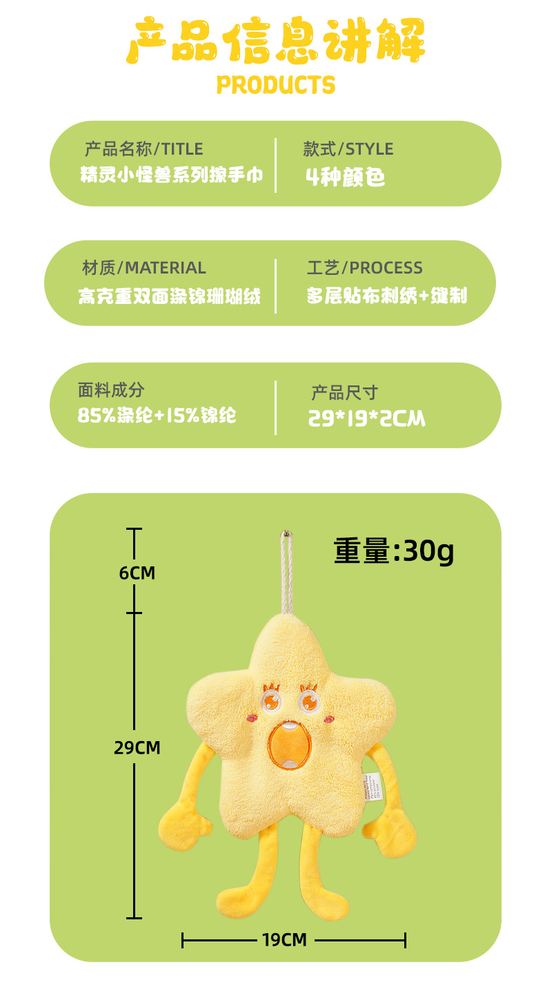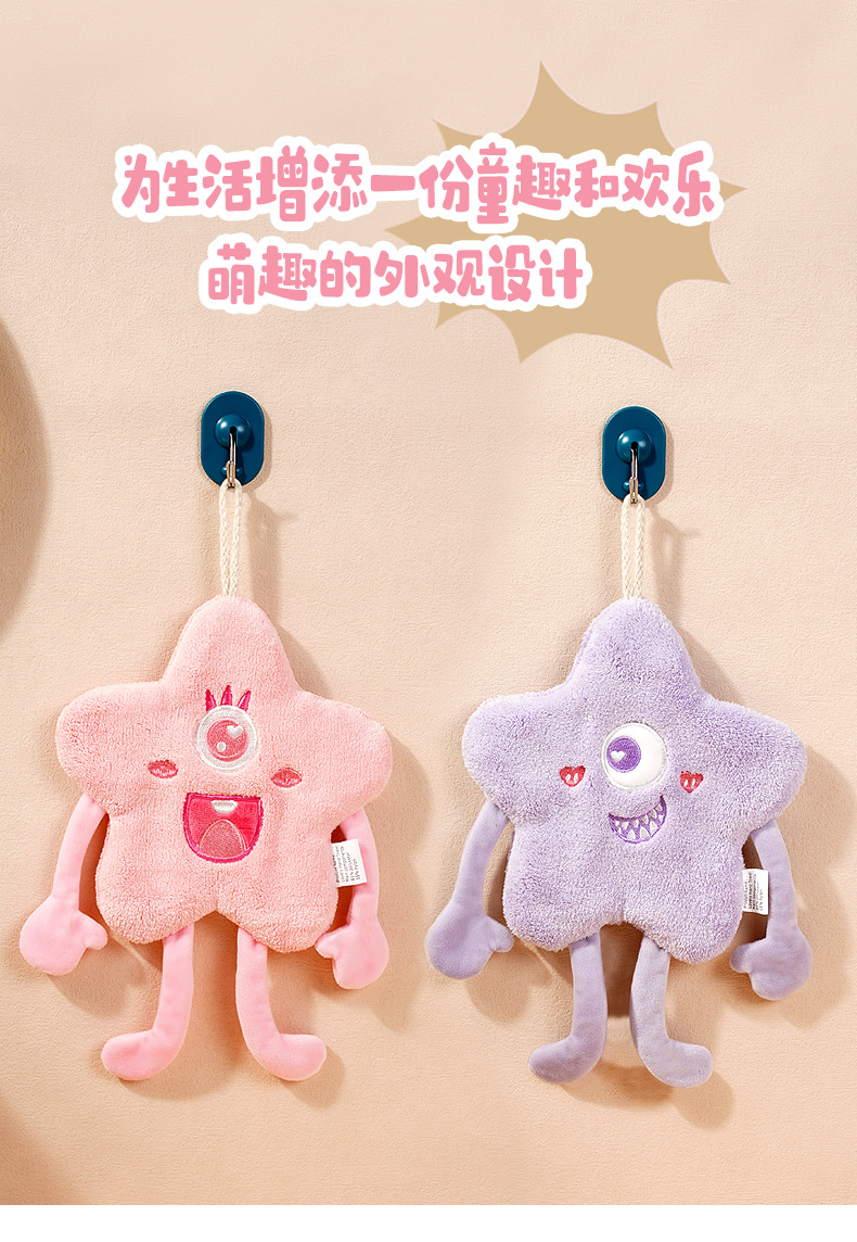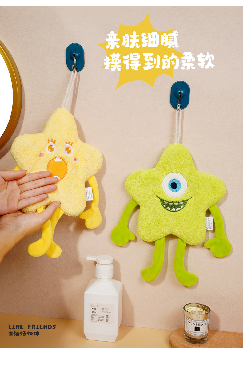 可爱丑鱼挂式擦手巾吸水卡通厨房儿童家用速干卫生间手帕毛巾GG英