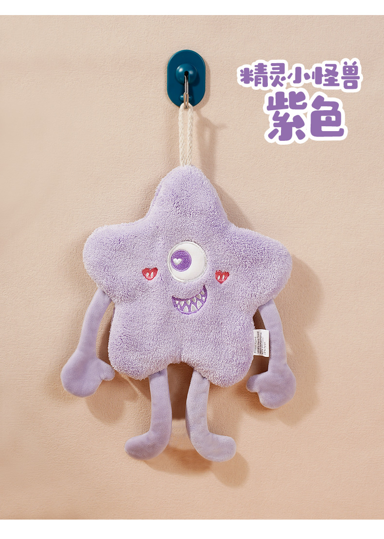 可爱卡通搞怪丑鱼挂式擦手巾加厚吸水厨房卫生间家用儿童毛巾手帕
