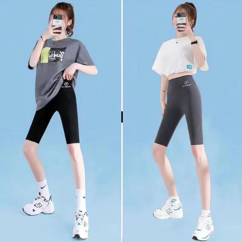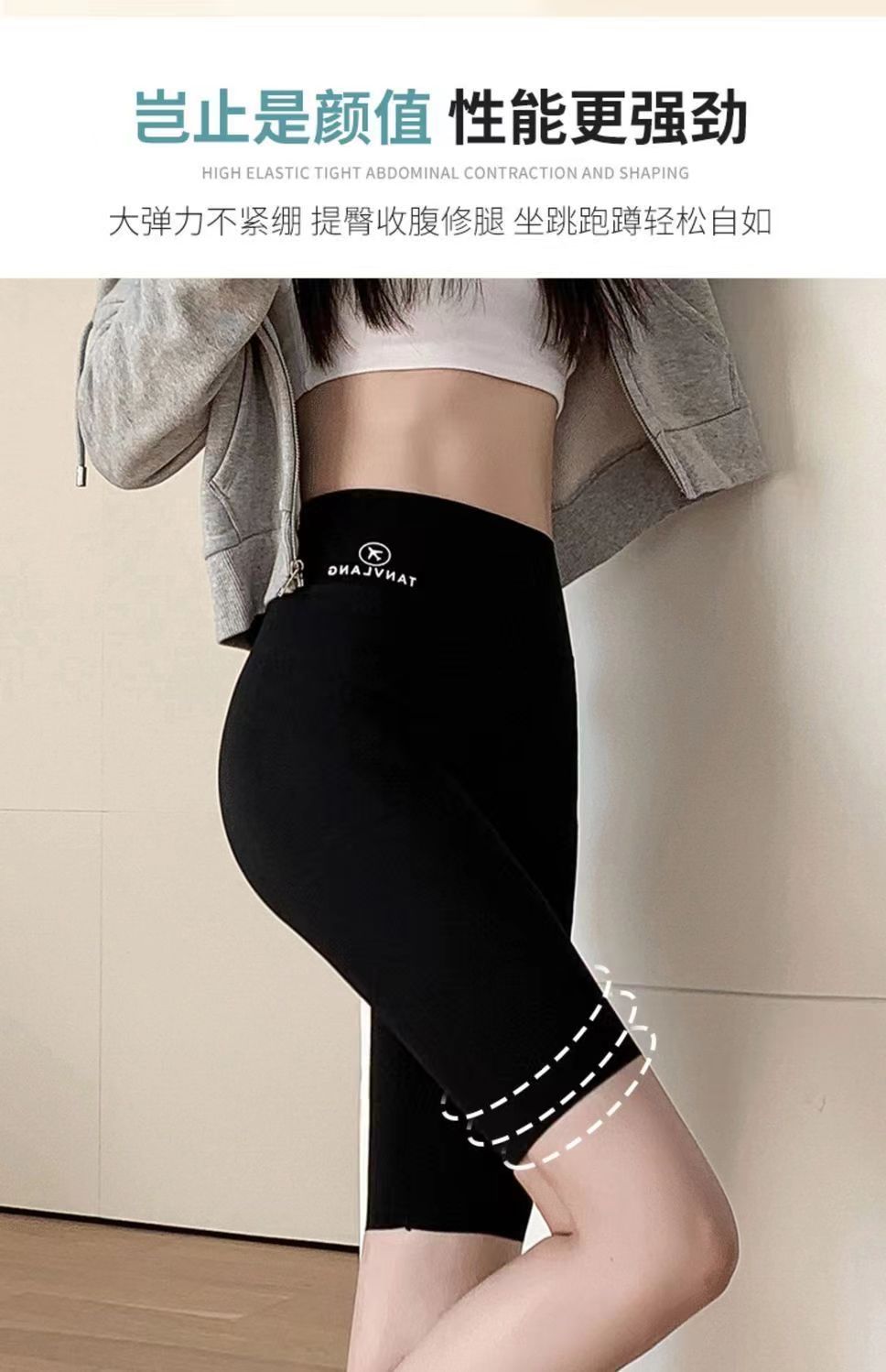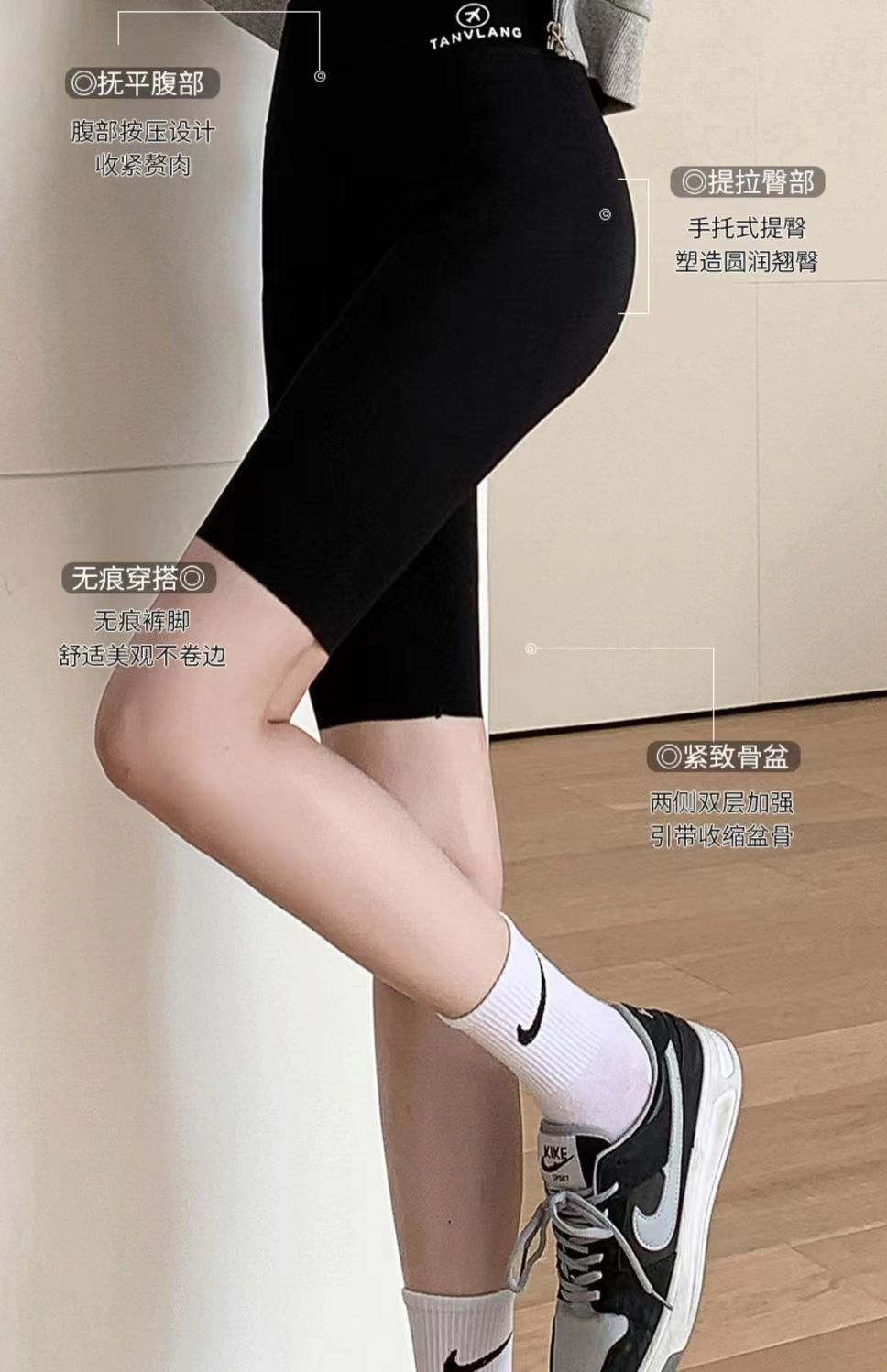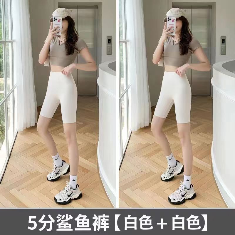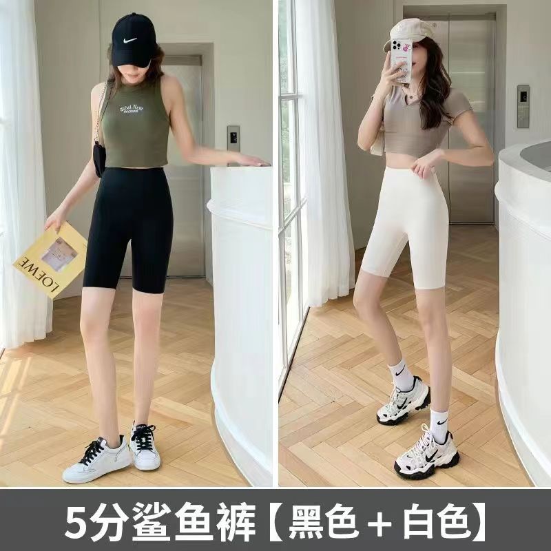 五分サメのズボンの女性は夏の薄いタイプの腰を着て痩せています。