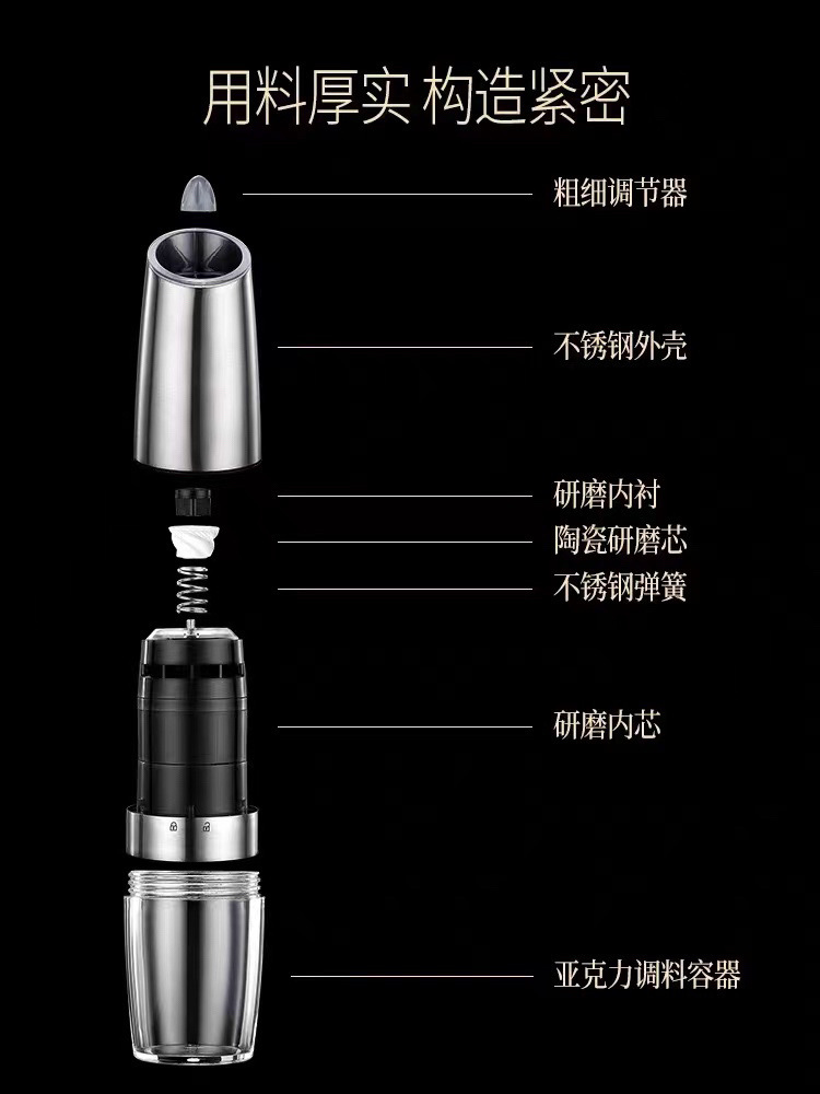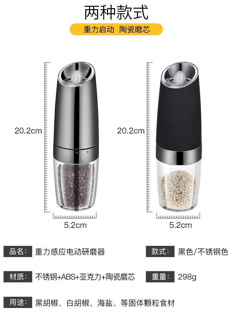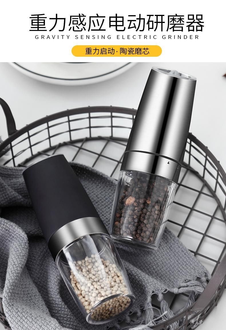 重力感应研磨器跨境重力感应迷你智能盐胡椒研磨机电动研磨器胡椒