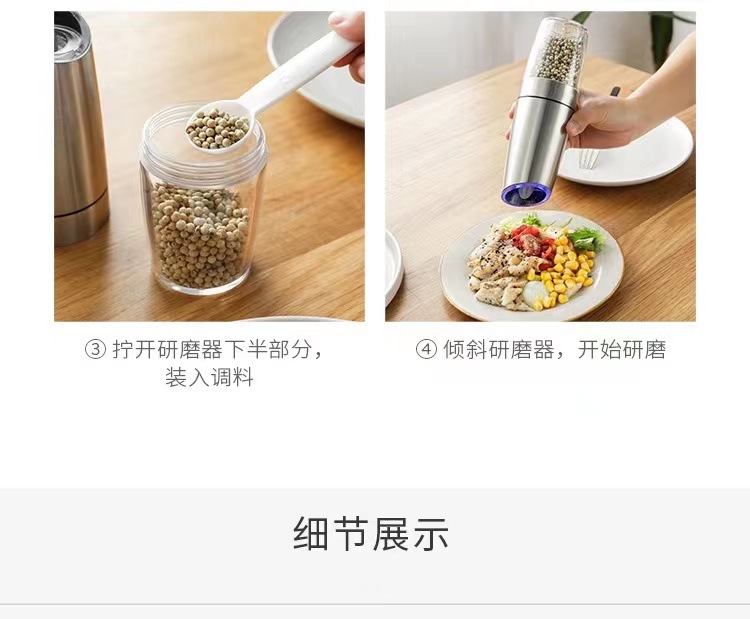 跨境感应胡椒粉海盐研磨器重力感应胡椒研磨器家用电动调料研磨器