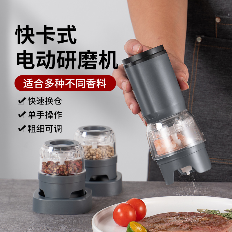 多功能电动胡椒研磨机家用快卡式可换仓海盐花椒黑胡椒调料磨粉器