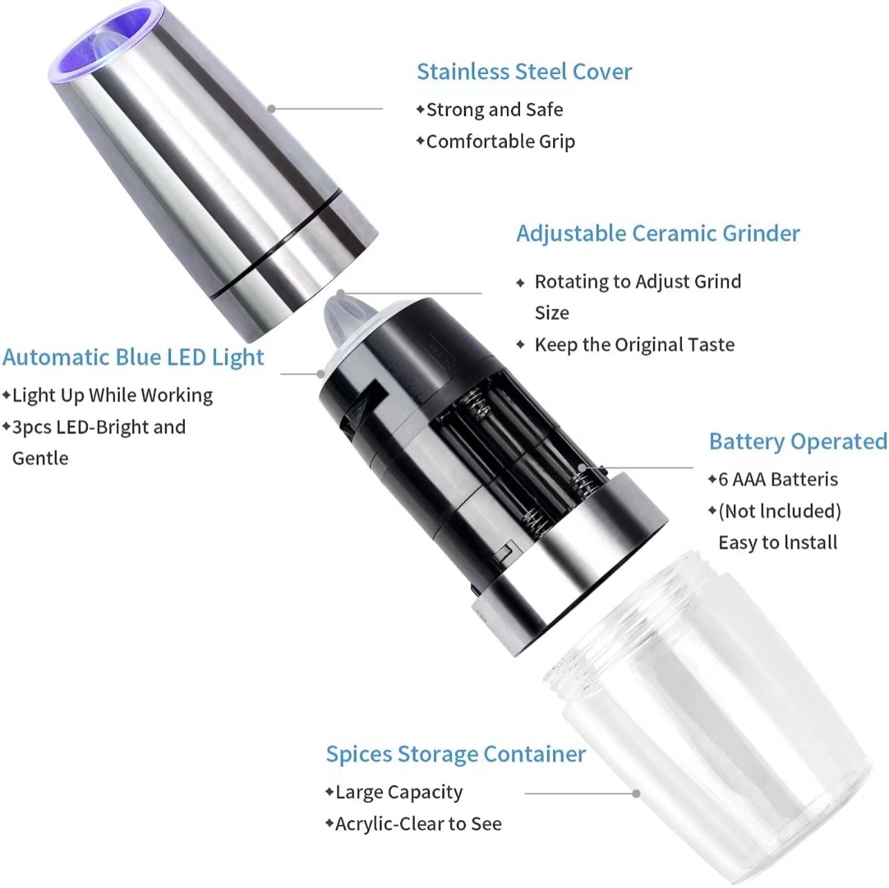 アマゾン2025新製品 電動ABSペッパーミル ペッパー粉砕機 キッチン調味料ボトル 4XAAA乾式粉砕