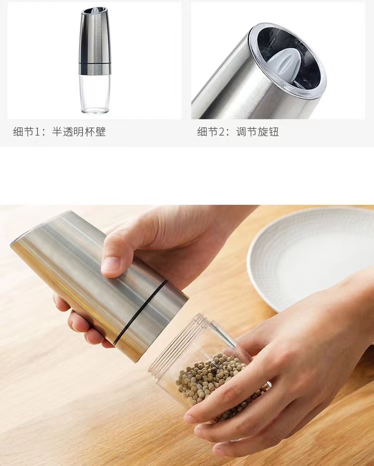 クロスボーダー重力感知胡椒研磨器家庭用電動調味料研磨器感知胡椒粉海塩研磨器