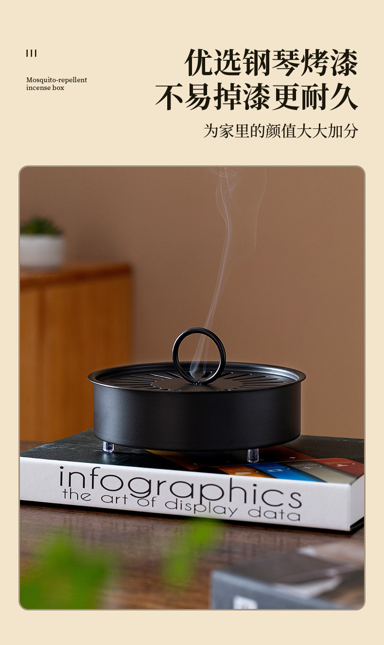 国境を越えて人気の炭素鋼蚊取り線香ボックス、家庭用鉄製蚊取り線香皿、蓋付き、防火、蚊取りボックス、創造的な灰受け蚊取り線香炉