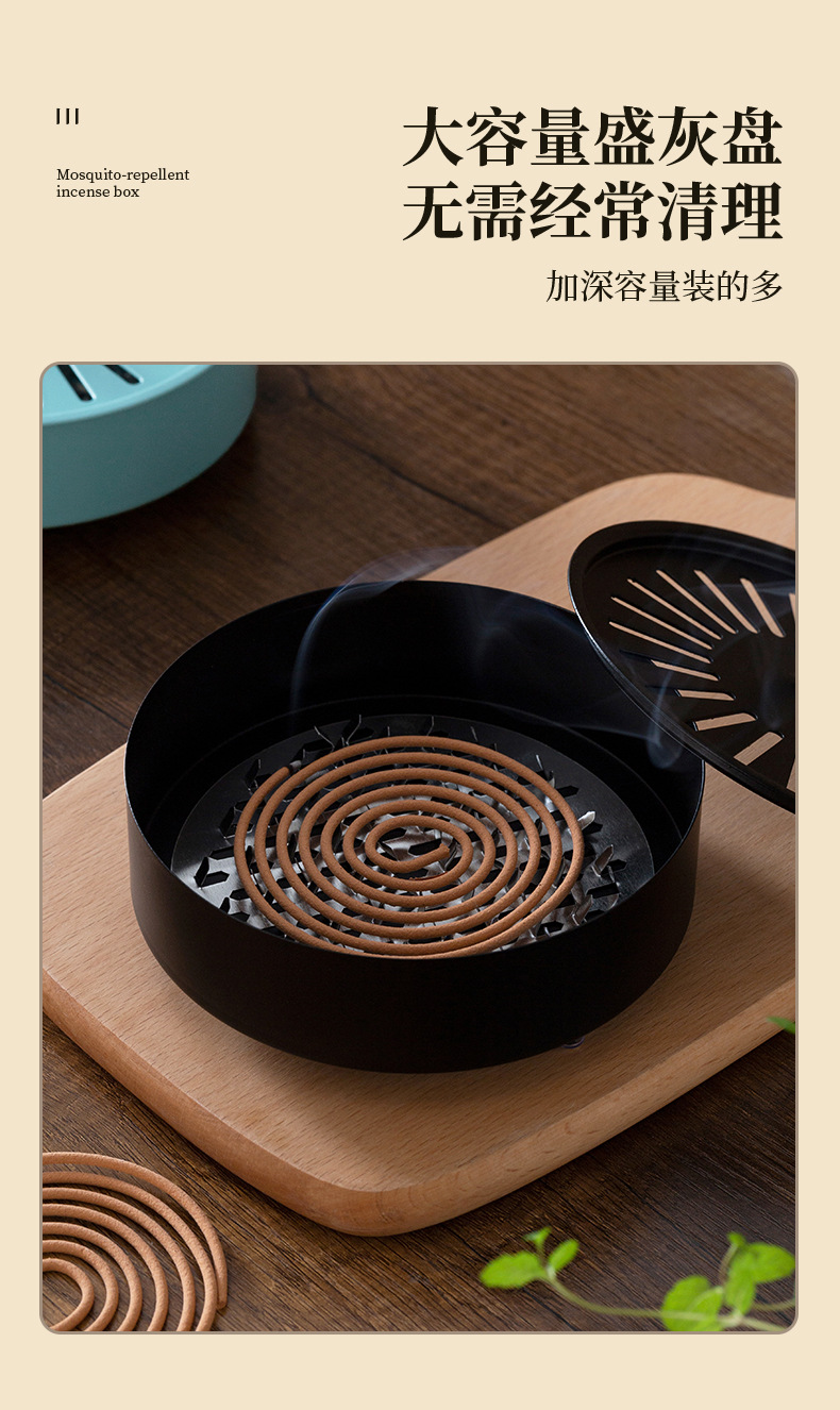 売れ筋炭素鋼蚊取り線香ボックス 家庭用鉄製蚊取り線香皿 蓋付き 防火蚊取り線香ボックス クリエイティブ灰受け蚊取り線香炉