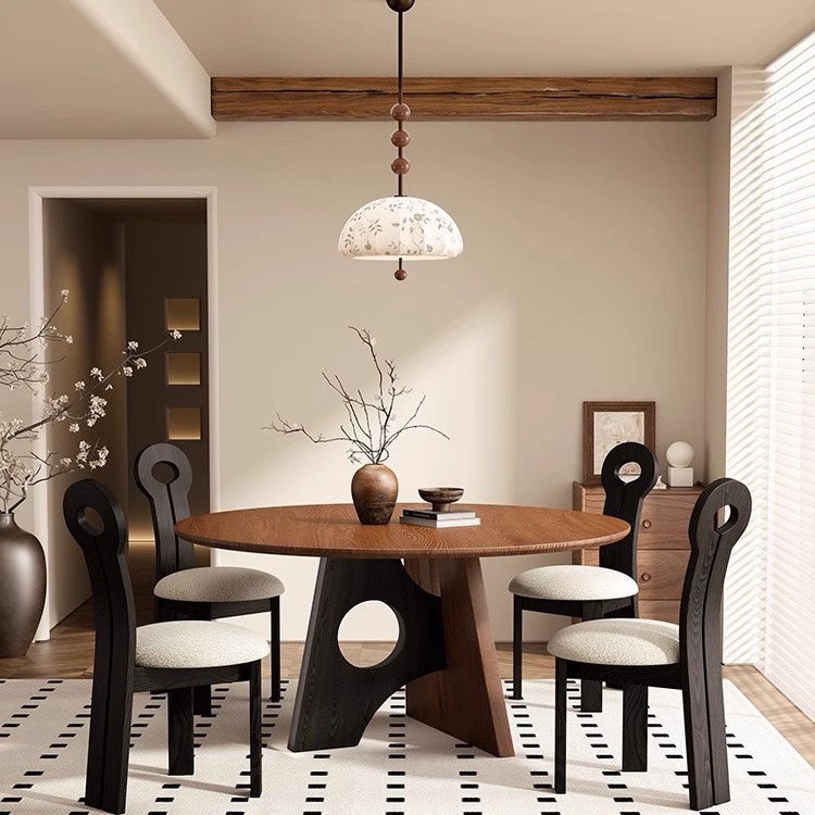 中世スタイルの無垢材ラウンドテーブル家庭用小さなアパートラウンドテーブル純粋な木製フレンチレトロダイニングテーブルと椅子の組み合わせ