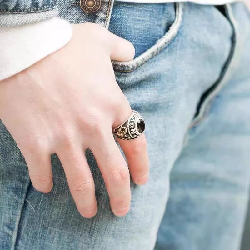 ジュエリーヨーロッパとアメリカンスタイルの人気のレトロなパターンブラックフェイズジルコンリングリングメンズライトラグジュアリー