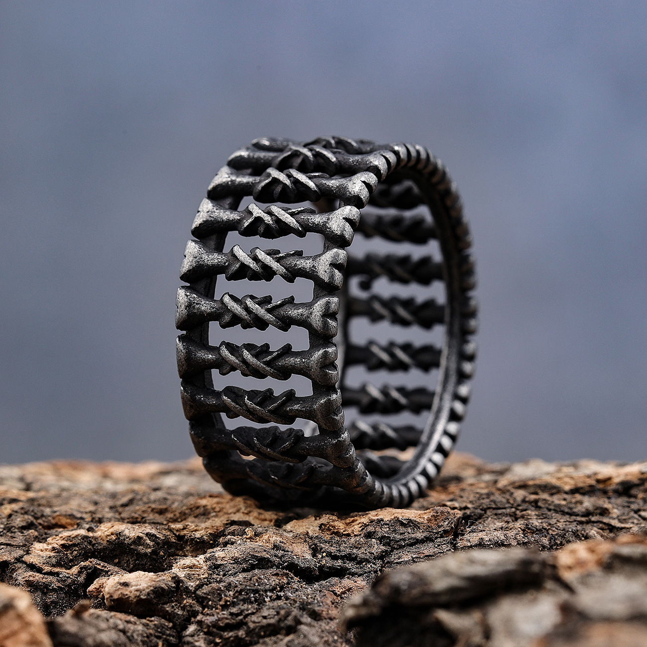 北欧で人気のヴィンテージ風骨型ピンバーブレスレット型チタン鋼リング メンズヴィンテージファッションアクセサリー卸売