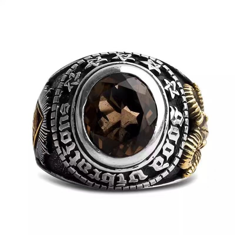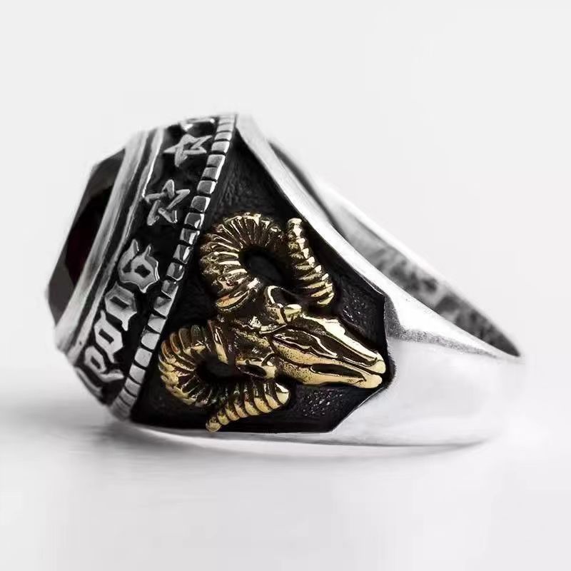 羊の頭の宝石の指輪の男性の欧米の個性の神の目は旧泰銀の人差指の装身具の覇気の潮人をします。