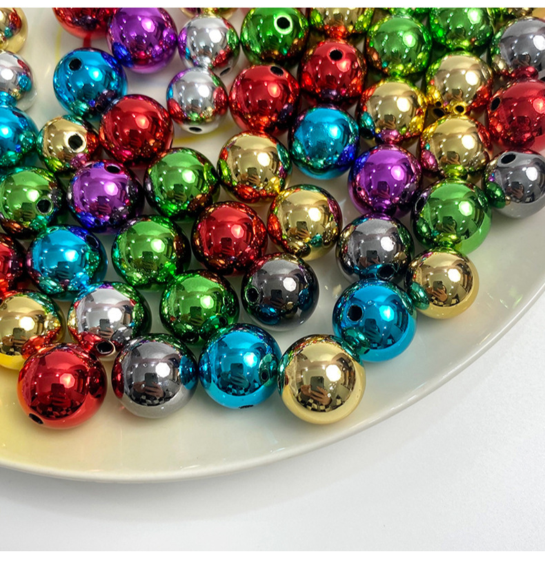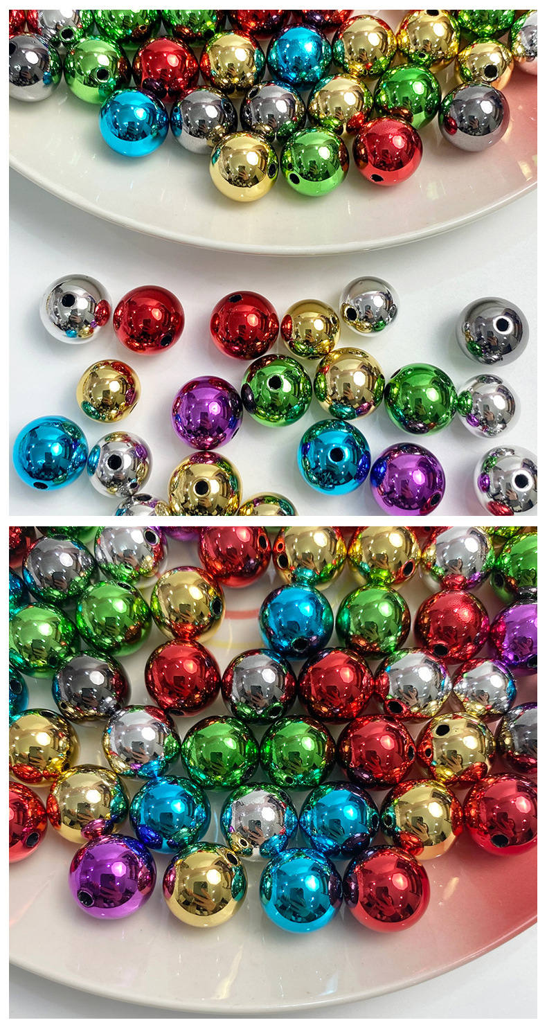 16UVコーティング 光沢のある金属風プラスチック丸玉 アクリルビーズ DIY手作りジュエリーブレスレット