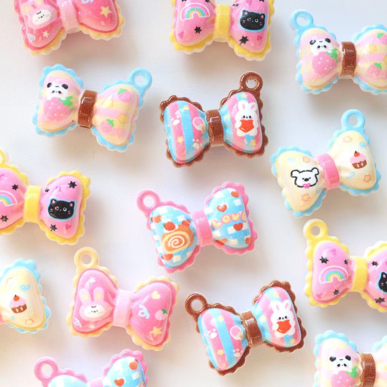 卡通可爱风蝴蝶结印花撞色三通领结 DIY串珠手机链包挂钥匙材料珠