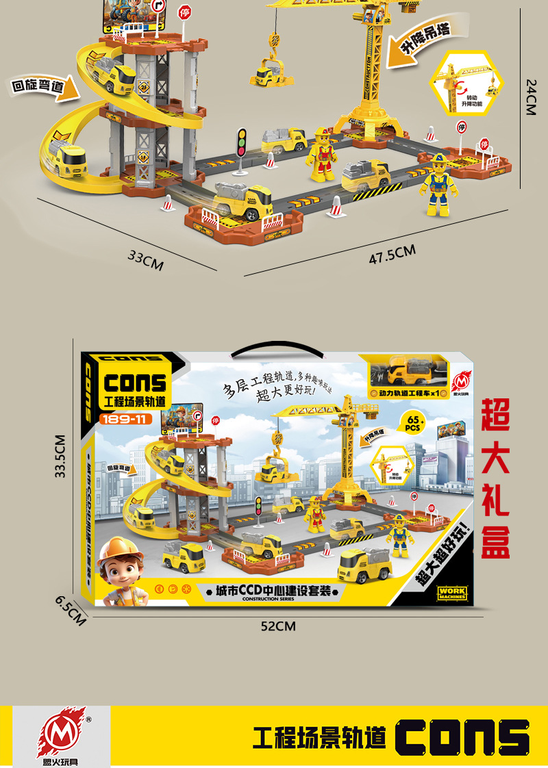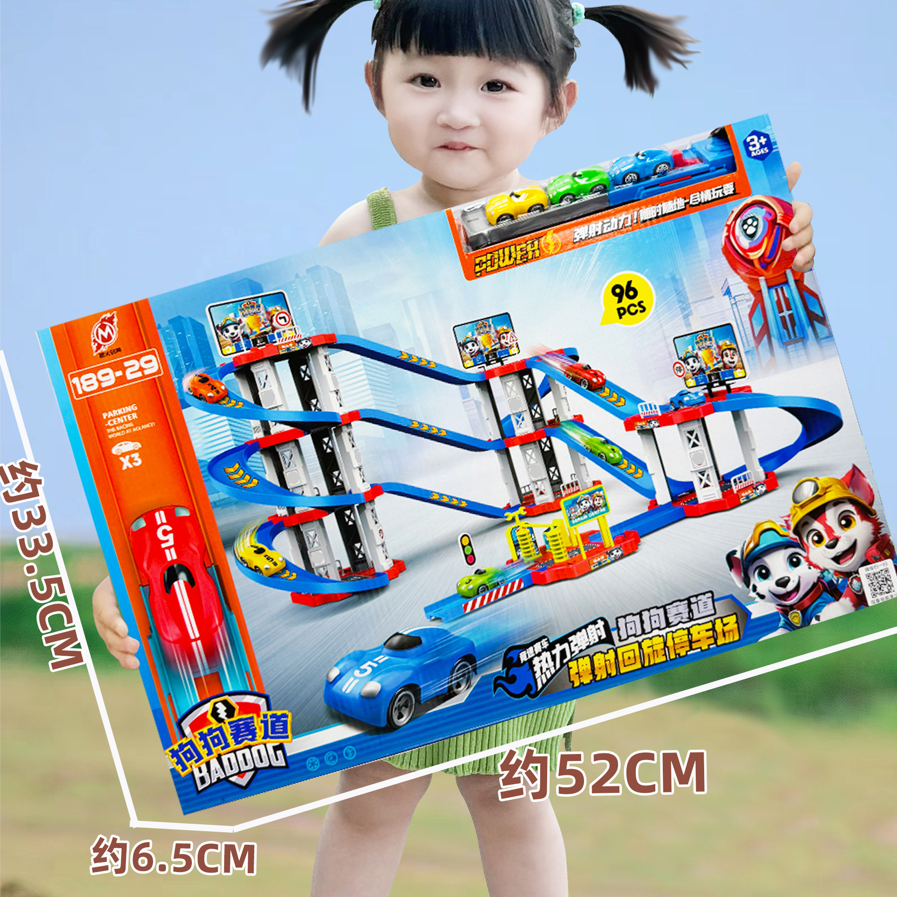 特大号ギフトボックスのレース軌道の多層大旋回駐車場の車の滑走は冒険の男の子のプレゼントを突破します。