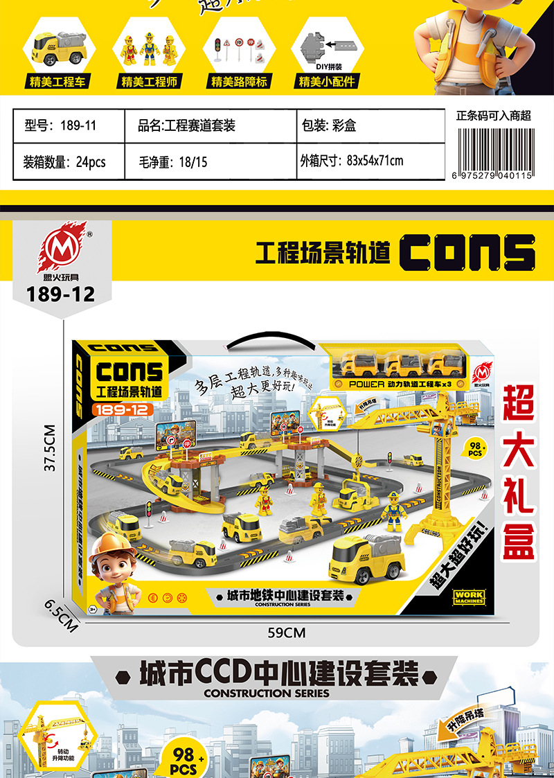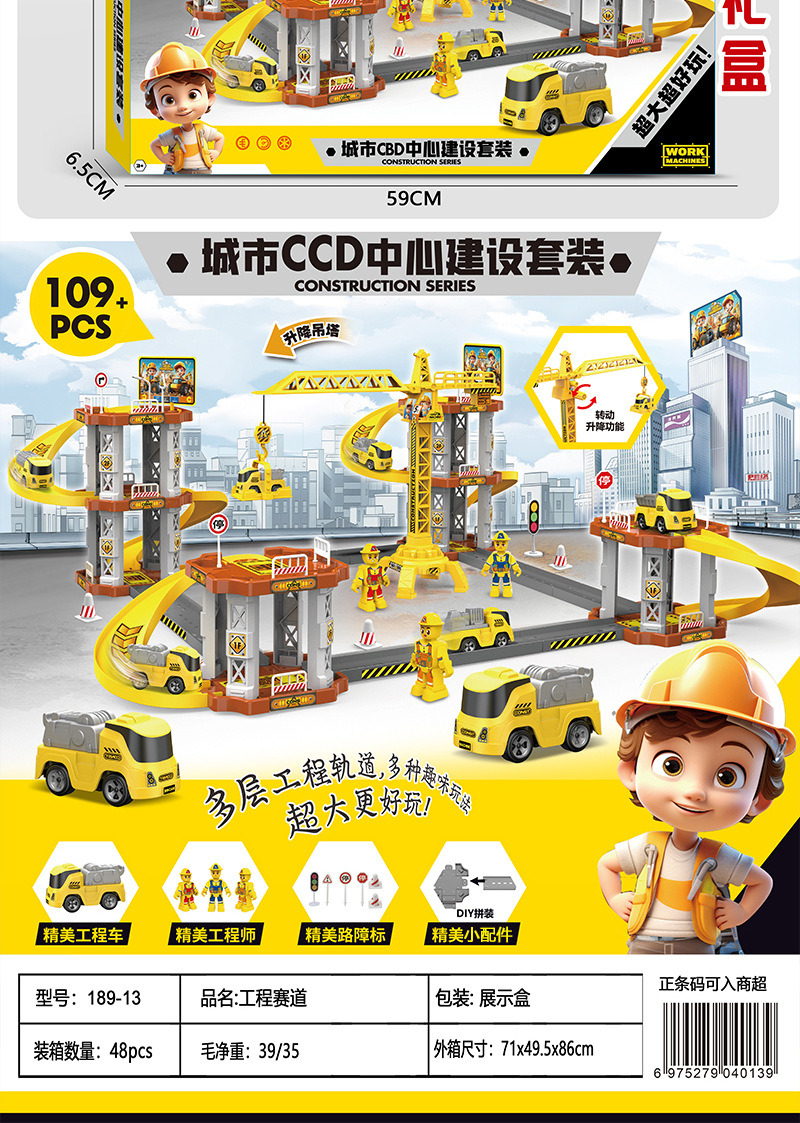 エンジニアリング車両 65個,エンジニアリング車両 109個,排出車両 62個,射出車両 78個,射出車両 123個,ドッグトラック 32個,カタパルトトラック駐車場 40台,排出渦巻き駐車場 96個,エンジニアリングカタパルト,トラックカタパルト,オービタルレーシングセンター 61個,カタパルトレーシングトラック 92個,合金製工事車両レールセット 102ピース,合金製カタパルト式レールカー