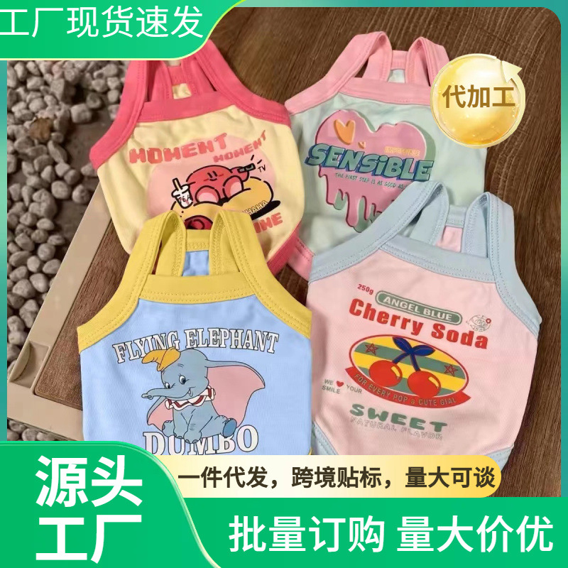 ペットの猫と犬の漫画かわいいドーパミンコントラストカラースモールスリング中小型犬服サマーテディビション