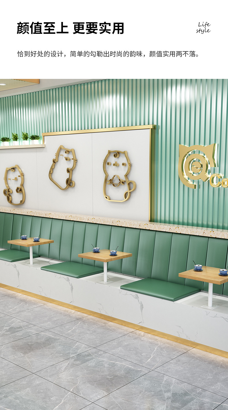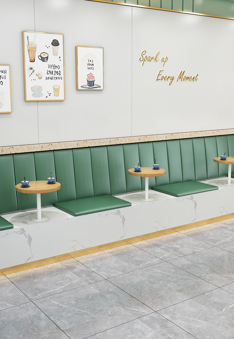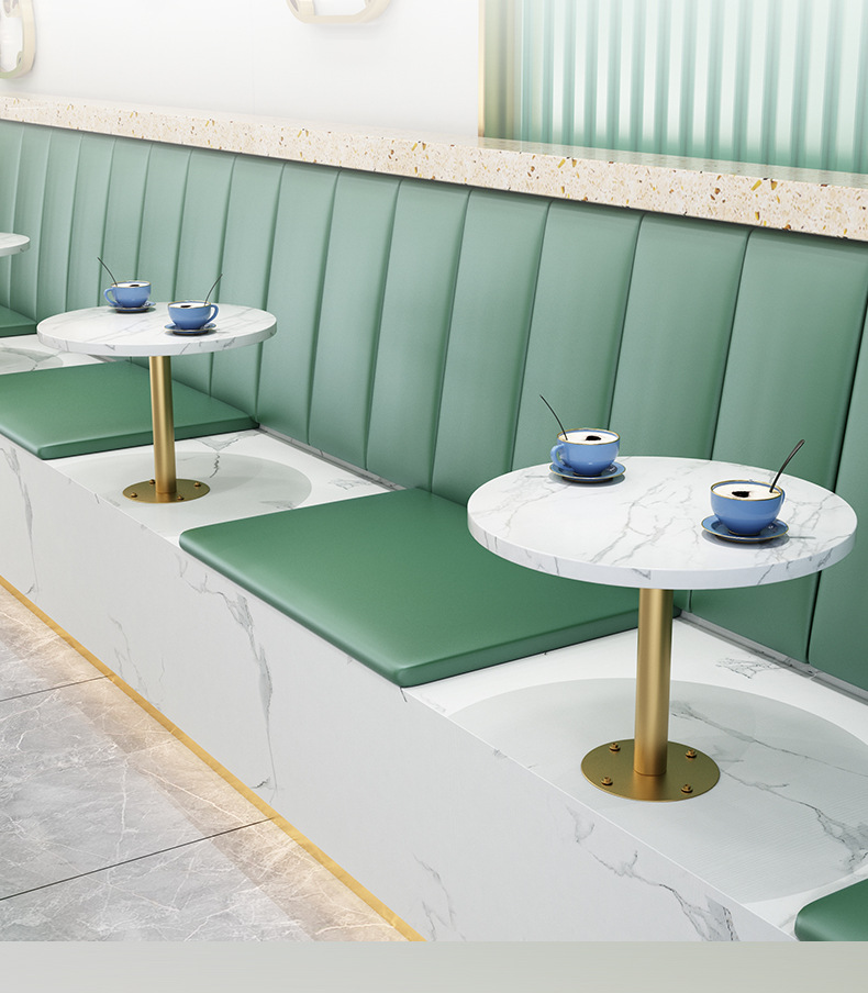 現代のシンプルな商用ミルクティー店のカフェの壁には、クリエイティブな小さな円卓が壁に寄りかかって丸い食卓のミニテーブルが飾られている