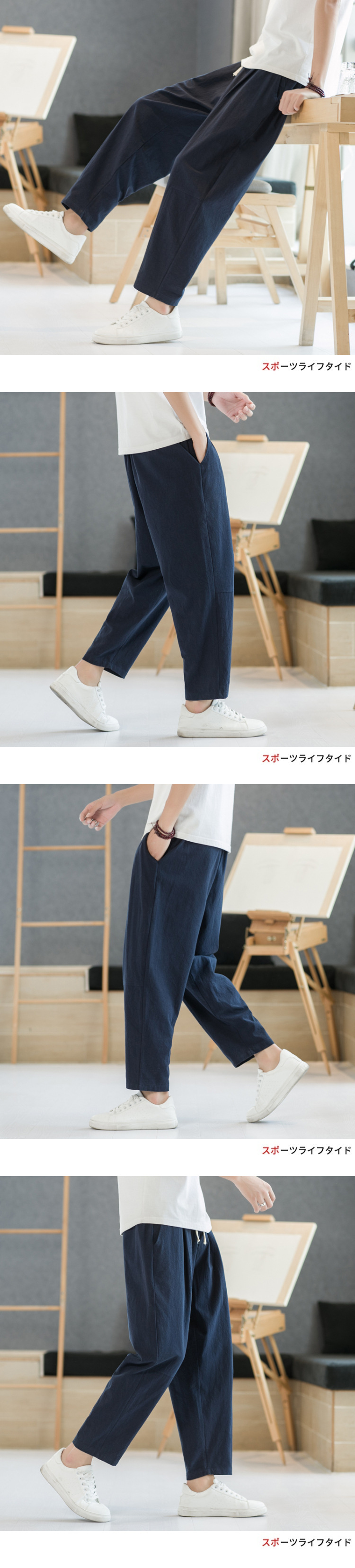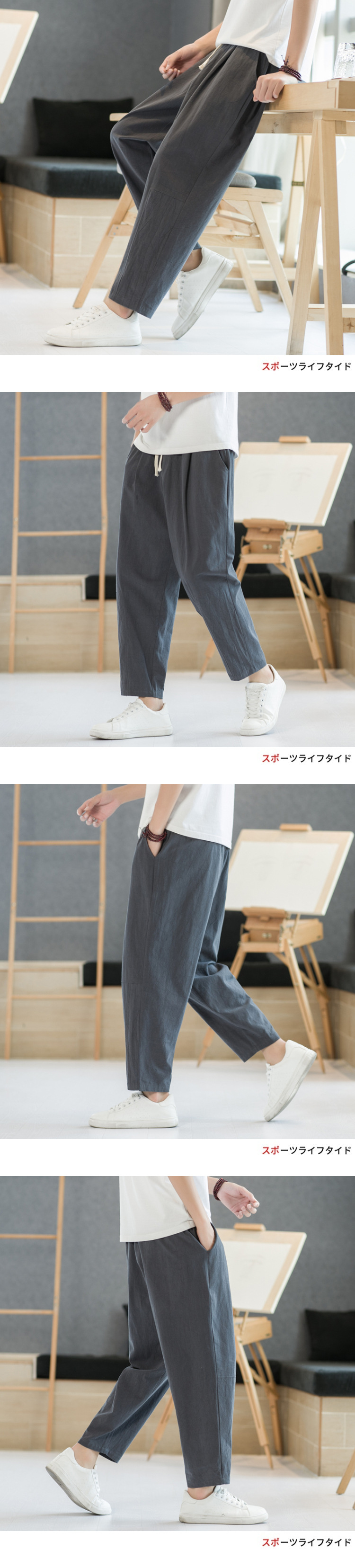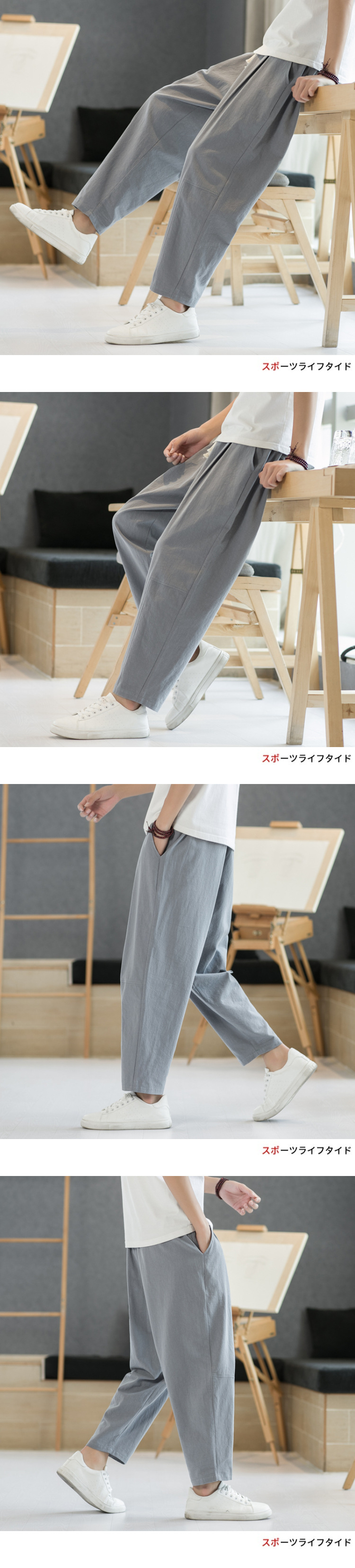 夏の薄い中国風の大きいサイズの綿麻の9分のズボンの男性のゆるい亜麻のカジュアルなズボンのハーレムのズボンの9分のズボンの男性のズボン