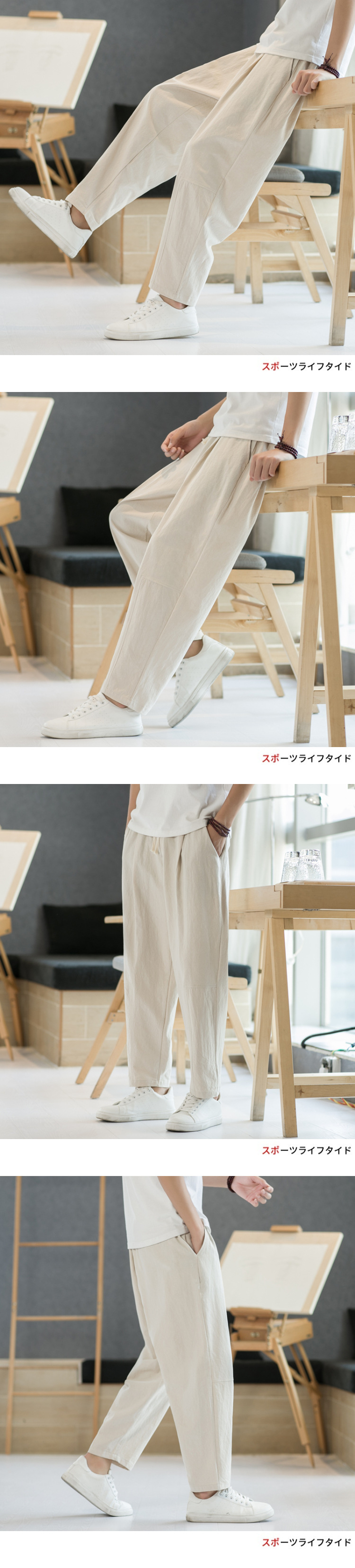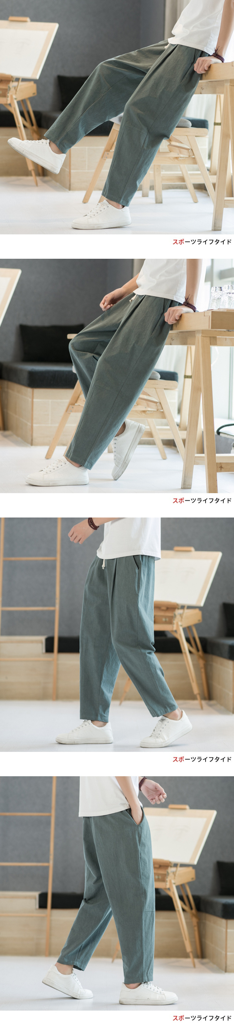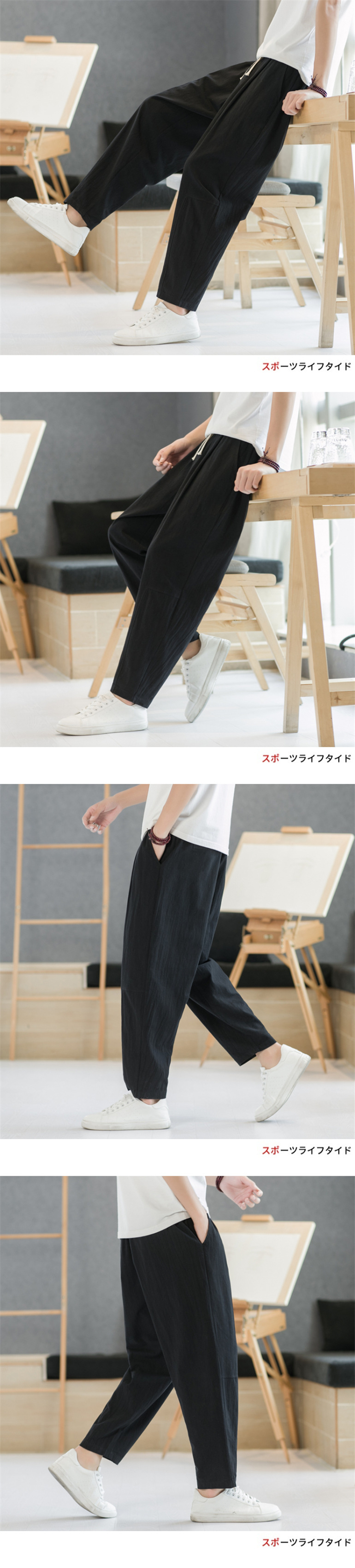 夏の薄い中国風の大きいサイズの綿麻の9分のズボンの男性のゆるい亜麻のカジュアルなズボンのハーレムのズボンの9分のズボンの男性のズボン