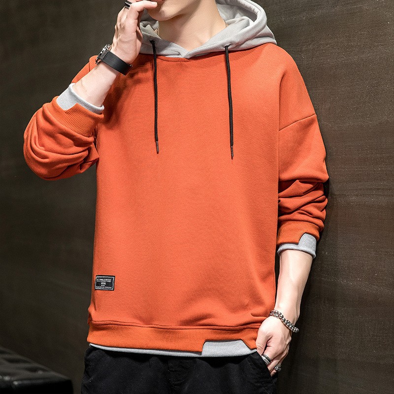 フード付きスウェットシャツメンズ 2025 春秋和風イントレンドブランドフェイクツーピースメンズスウェットシャツ若者カジュアル紳士服
