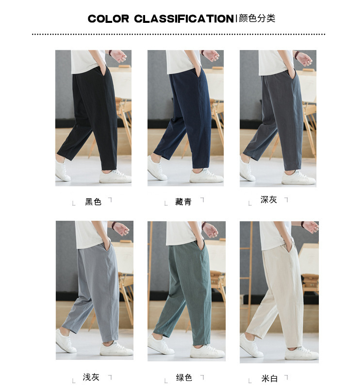 夏季薄款中国风大码棉麻九分裤男宽松亚麻休闲裤哈伦裤9分裤男裤