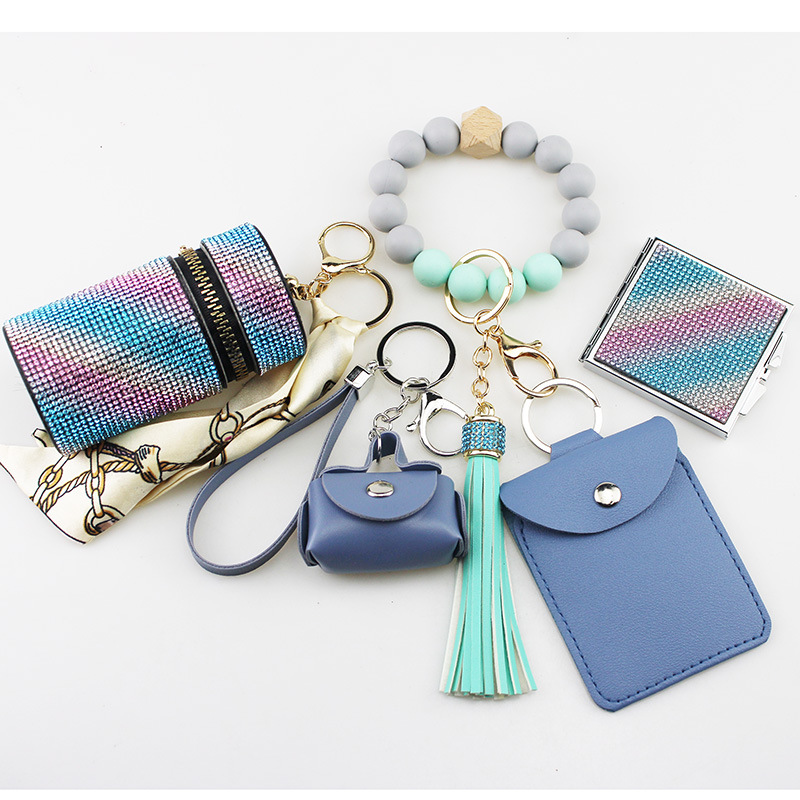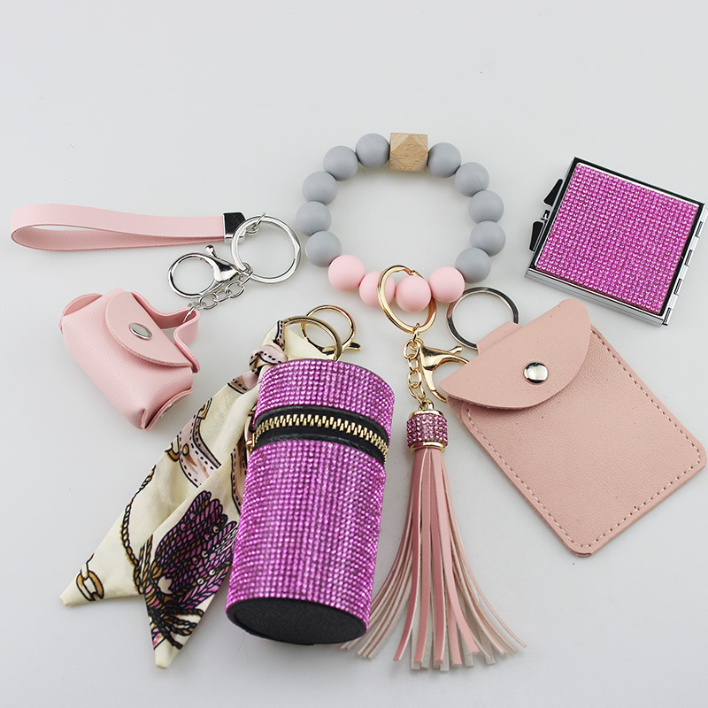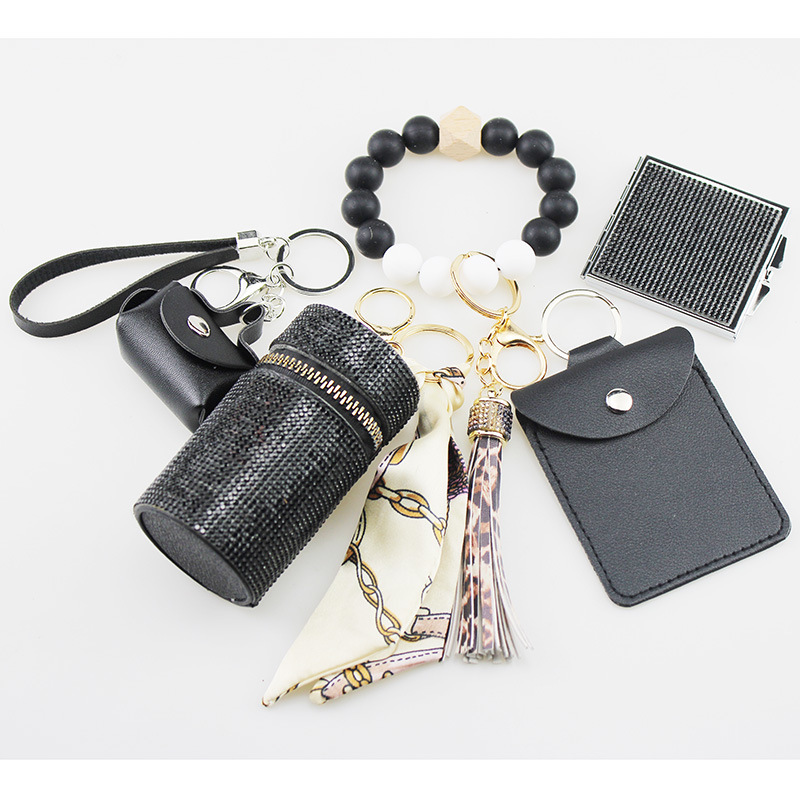Amazon越境人気ポータブルダイヤモンド付き護身用15ピースキーホルダーセットキー