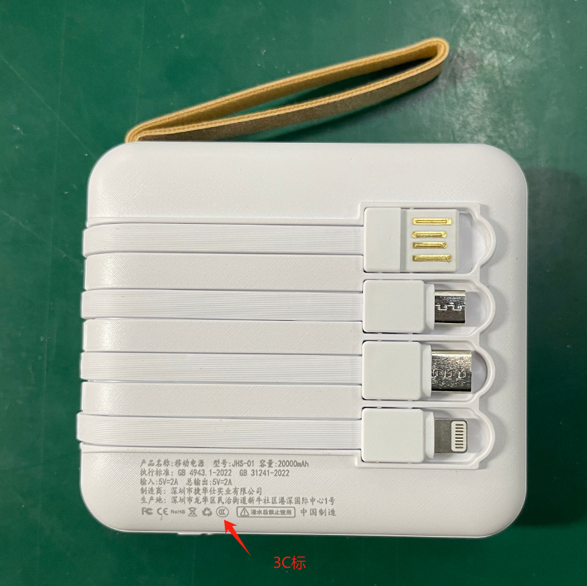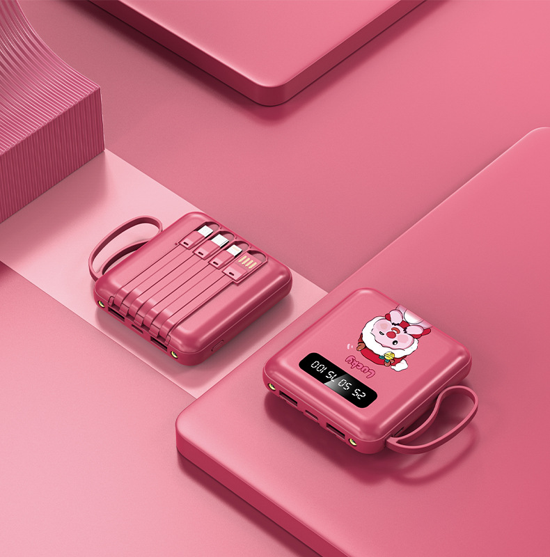 3C認証ミニモバイルバッテリー20000mAh、ケーブル内蔵、カスタムロゴ対応、急速充電