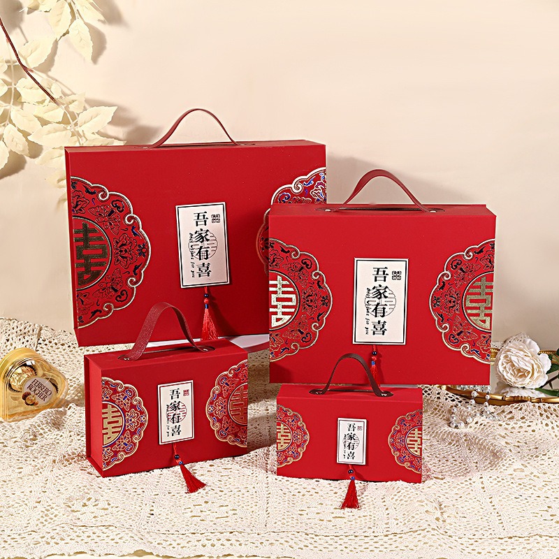吾家有喜生日礼物包装盒结婚伴手礼手提盒新中式喜庆流苏喜糖盒子