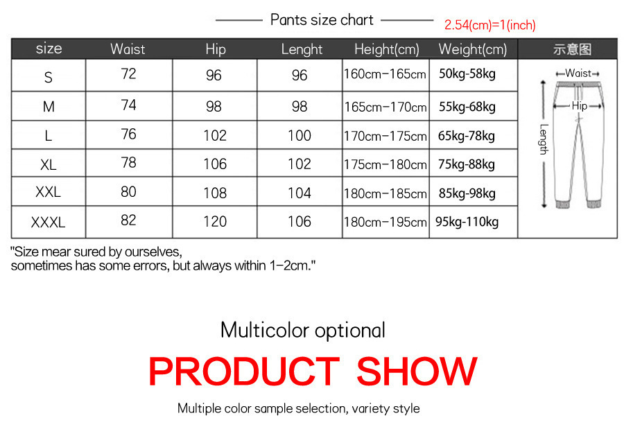 ズボンサイズ S,M,L,Xl,2xl,3xl