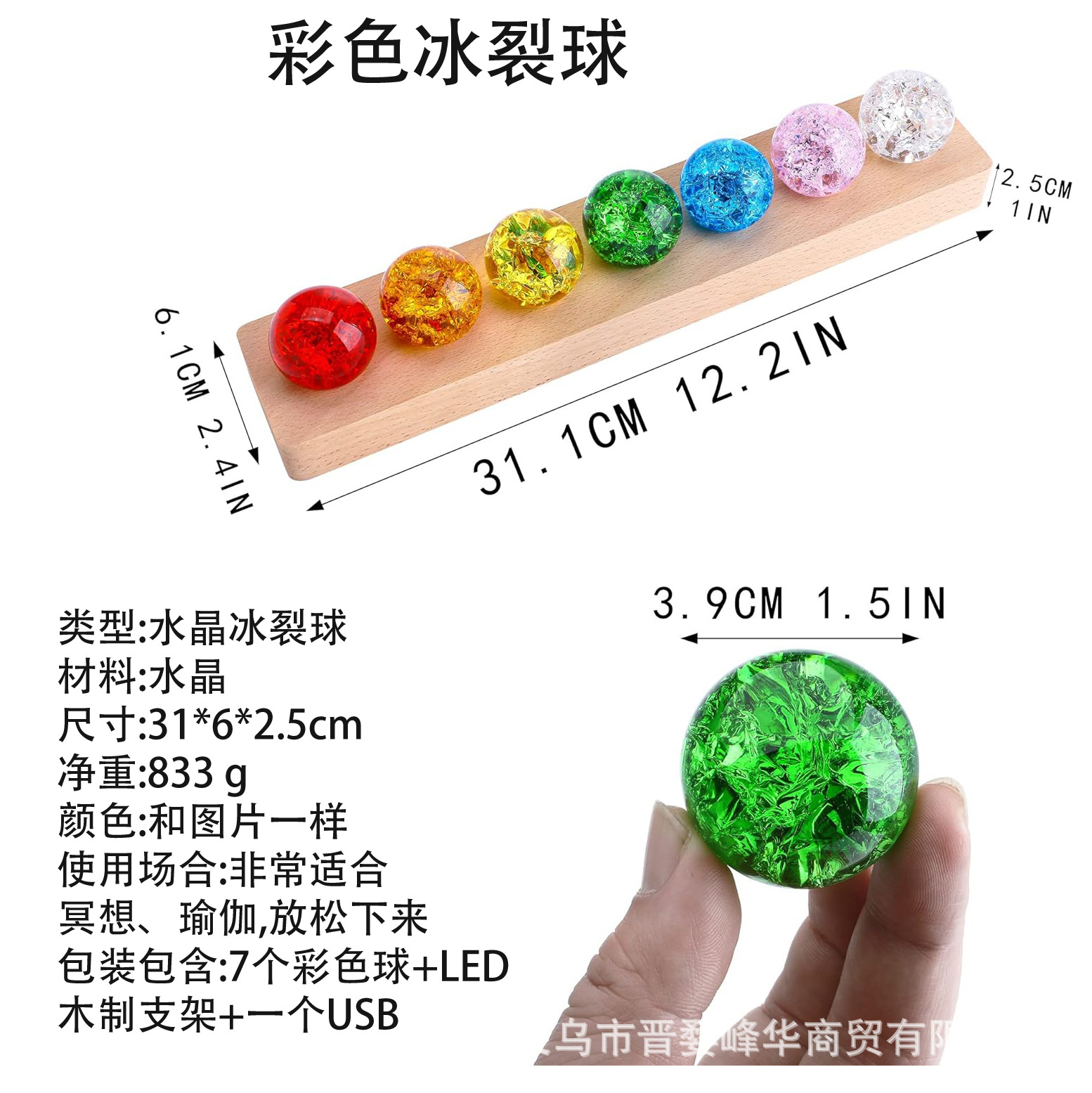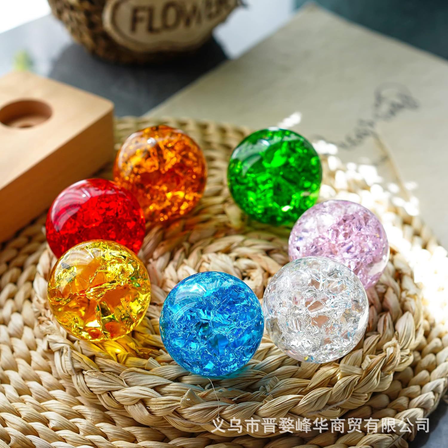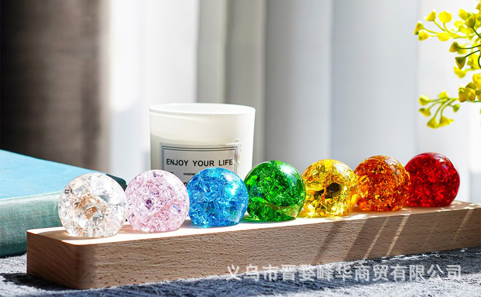 七彩水晶球琉璃珠炫彩水晶冰裂球发光摆件办公室桌面装饰送人礼物