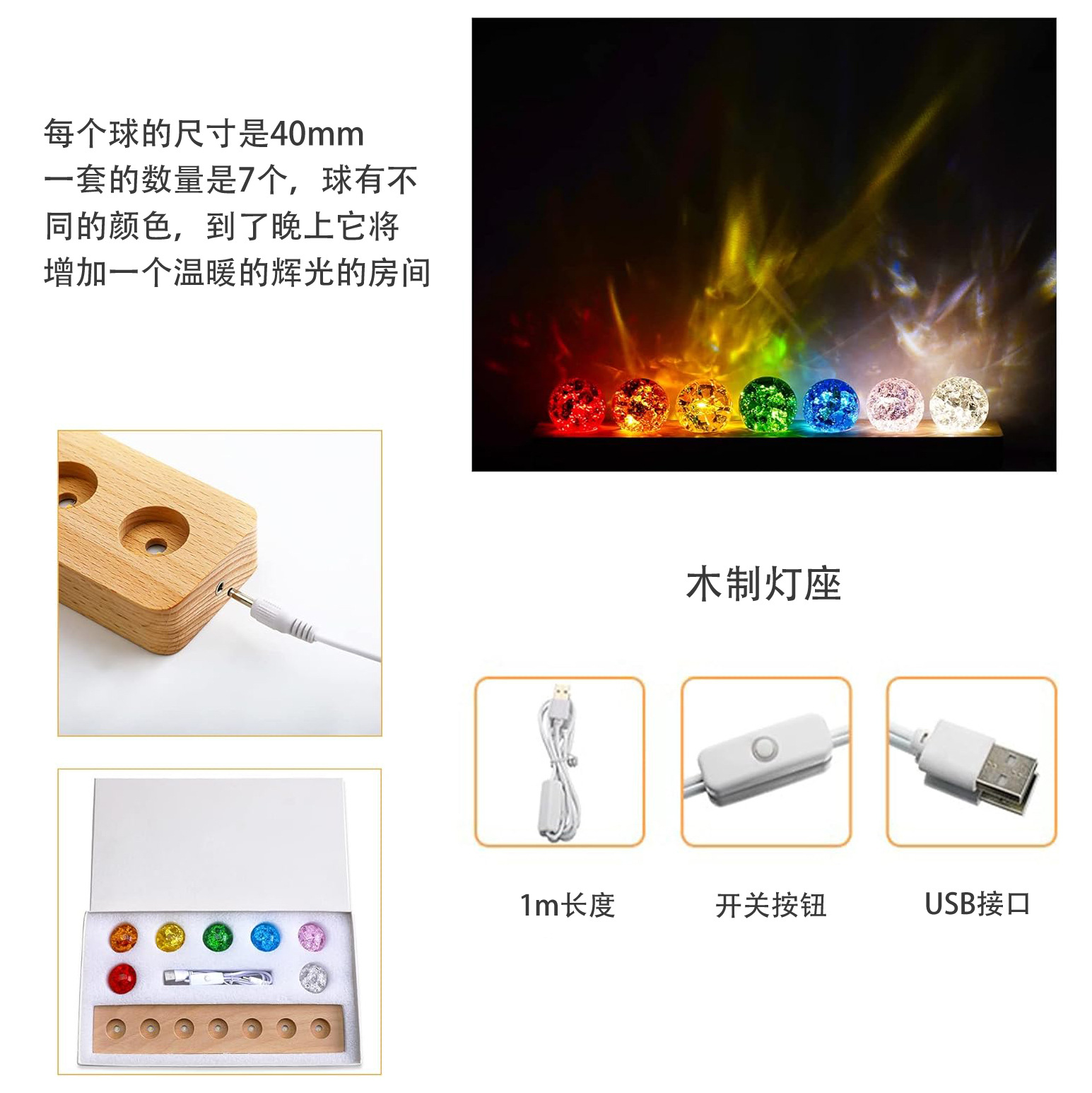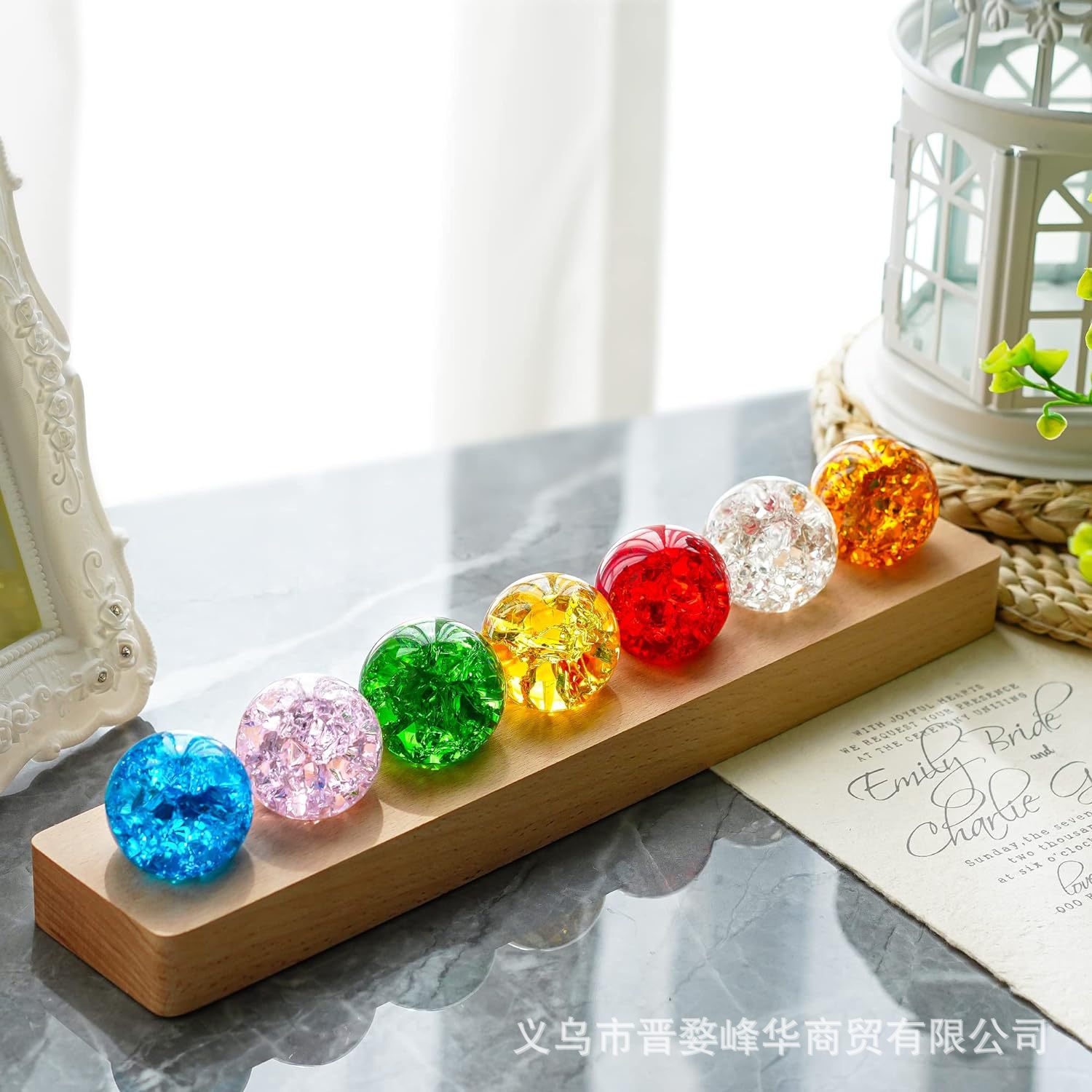 カラフル瑠璃水晶玉置物テーブルトップ装飾ナイトライトクリエイティブギフトプレゼント星空七星吉照4CM
