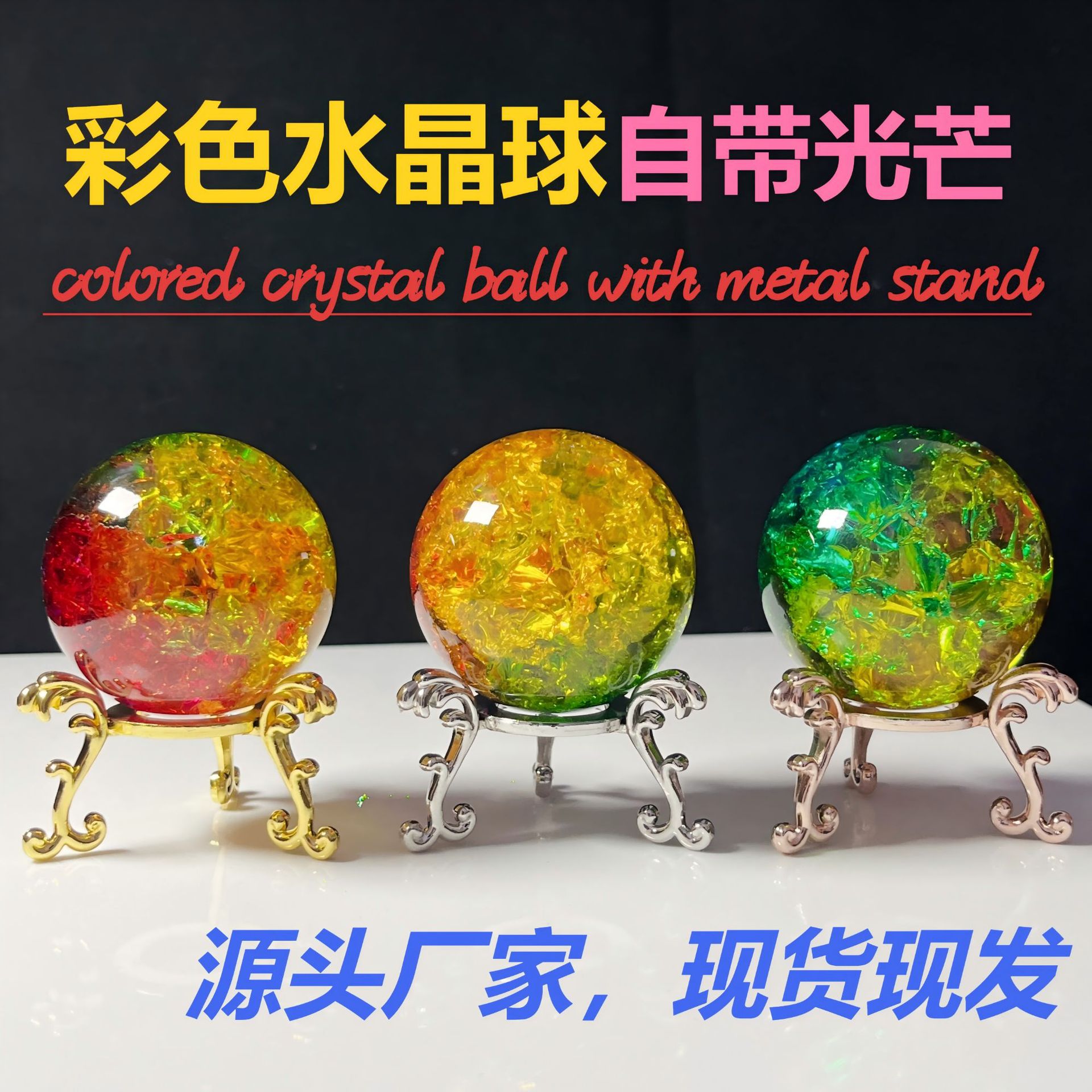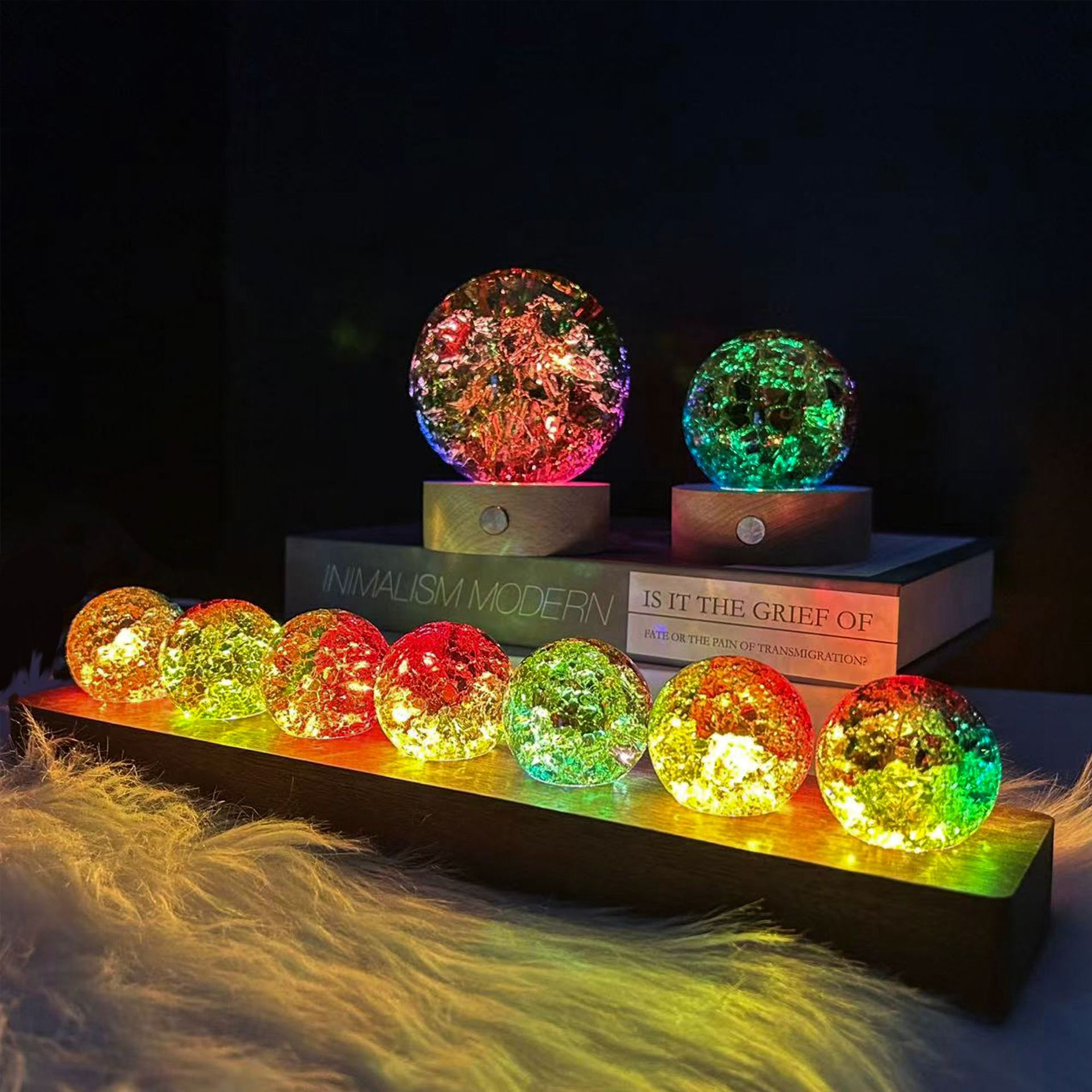 跨境七彩琉璃摆件水晶球桌面装饰品礼品高档节日水晶石礼物小夜灯