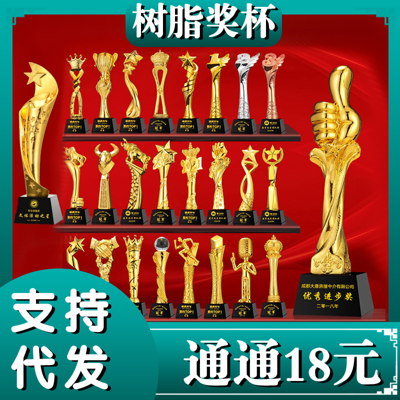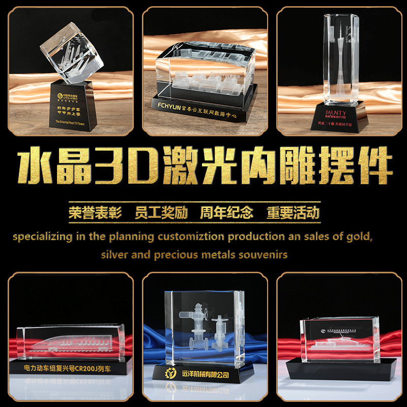 メーカー卸売り水晶トロフィー透明メダル記念品金属樹脂栄誉置物工芸品年次総会