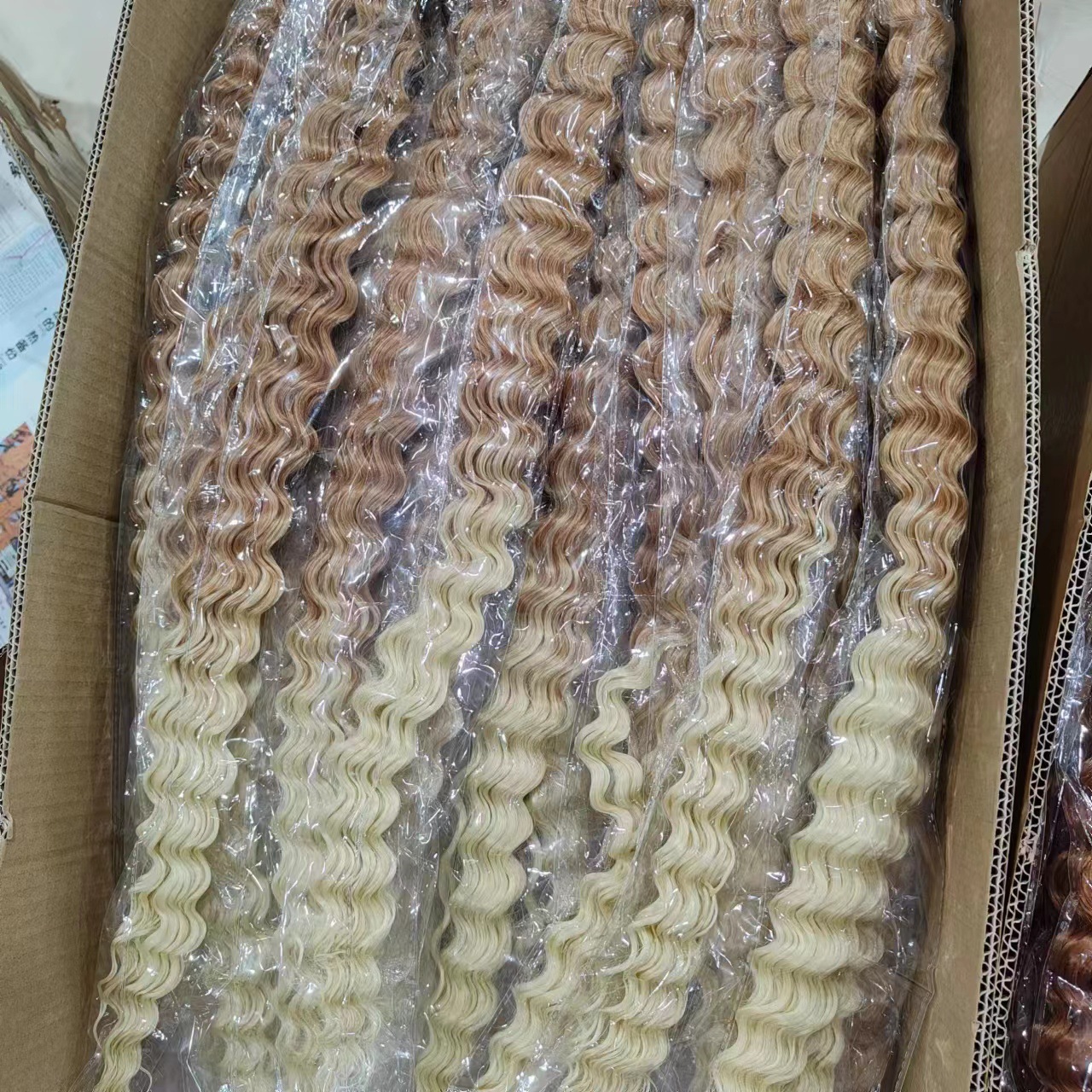クロスボーダー欧米の非化学繊維のかぎ針の髪は汚いお下げを編みます。deep twistかつらDeep Waveの髪は20-30です。