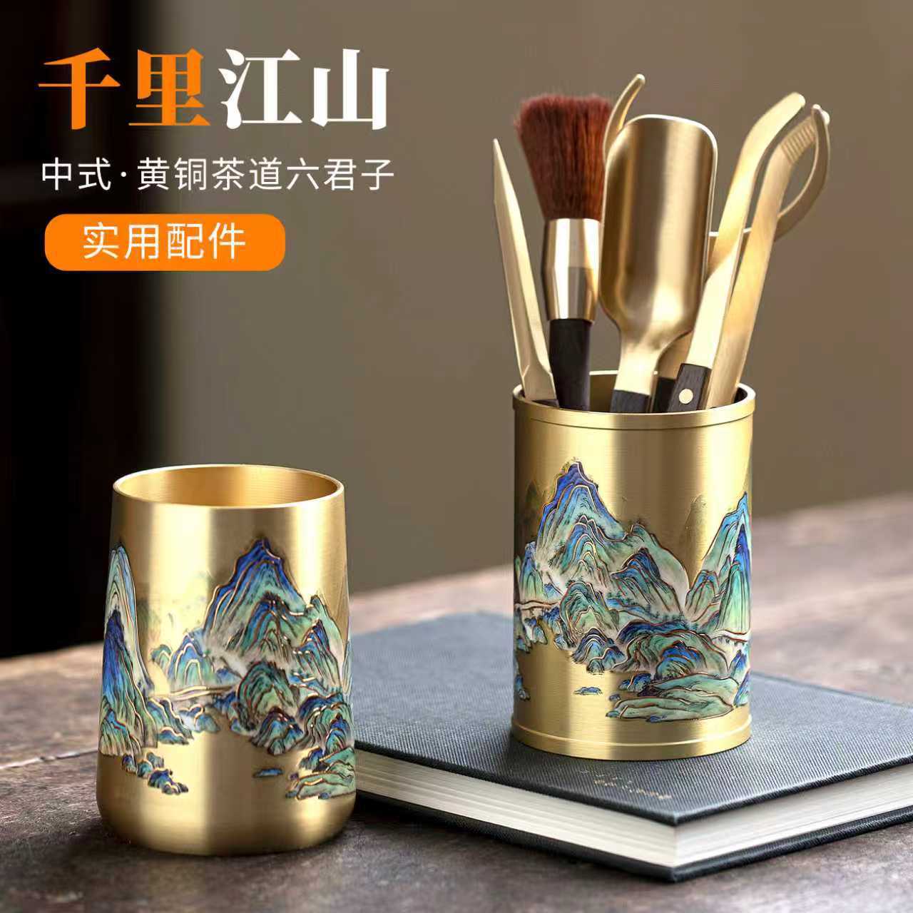 黄铜茶道六君子套装功夫茶具配件6件套茶筒茶刀茶夹茶勺茶笔6君子