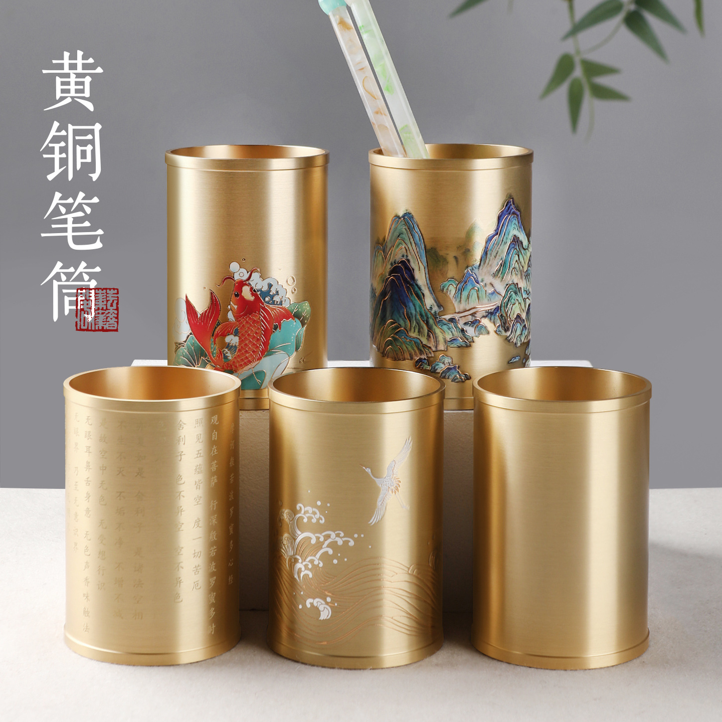 毛笔笔筒收纳盒黄铜金属笔筒创意高级感文房四宝桌面摆件学生笔筒