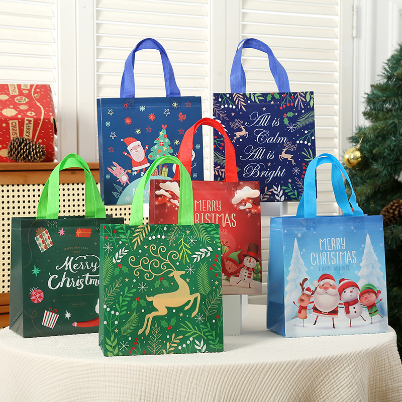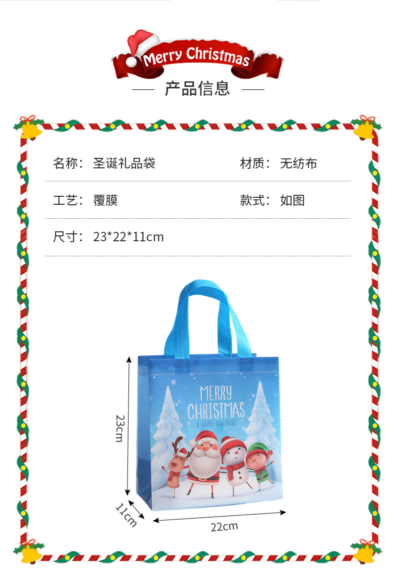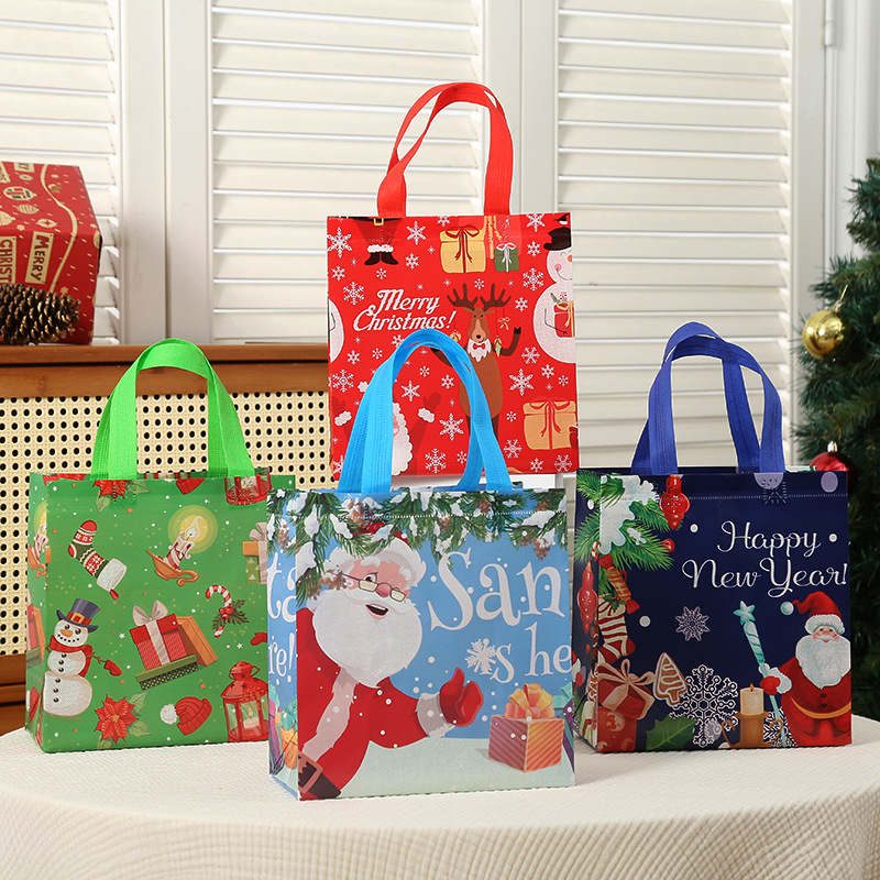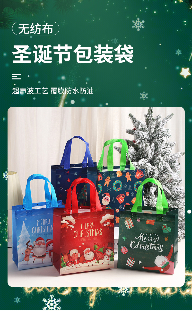 新款圣诞主题礼品袋外卖打包带印花伴手礼包装袋批发无纺布袋子