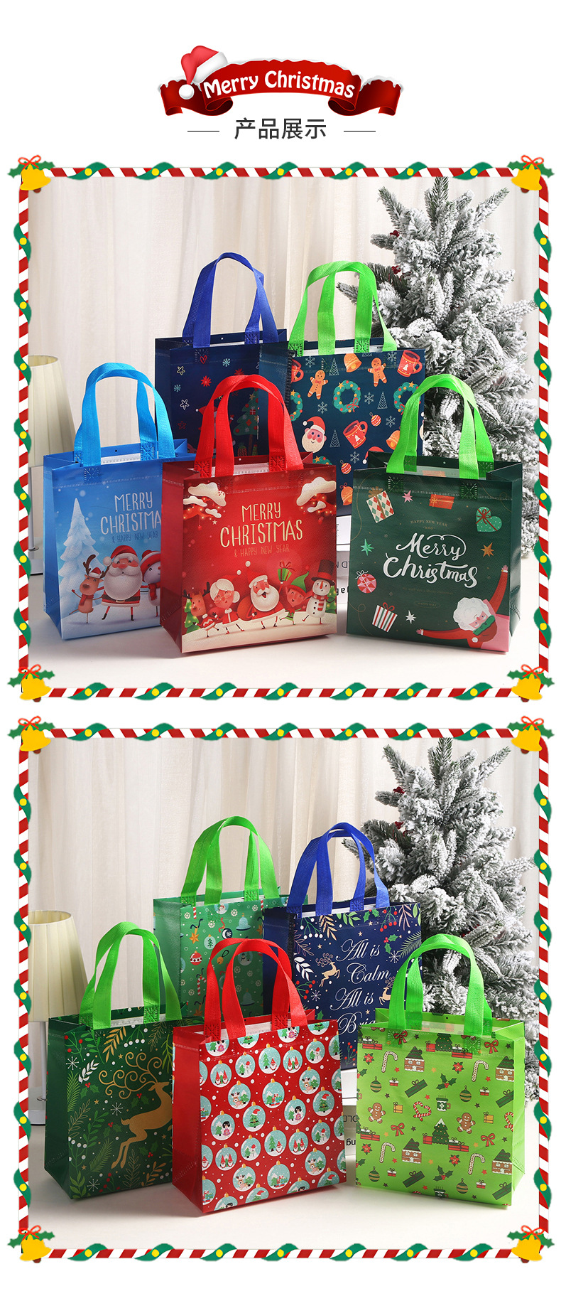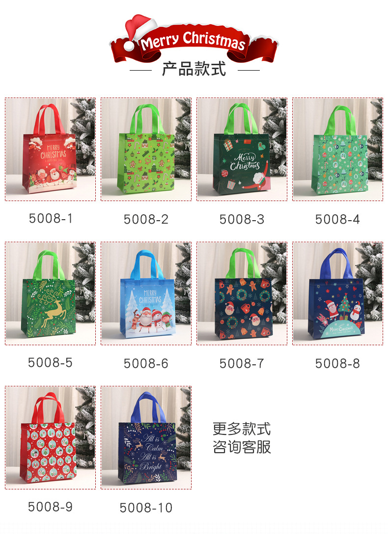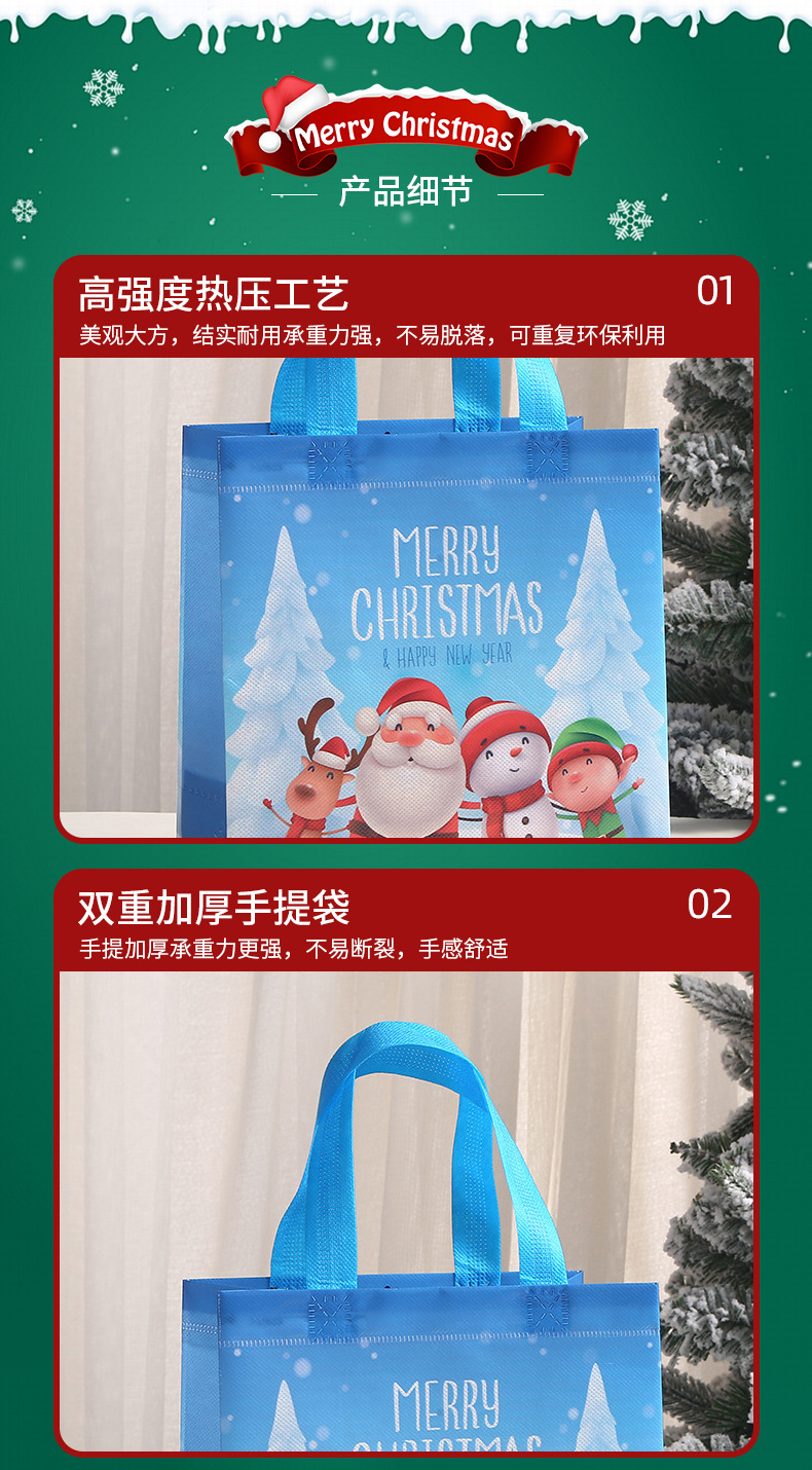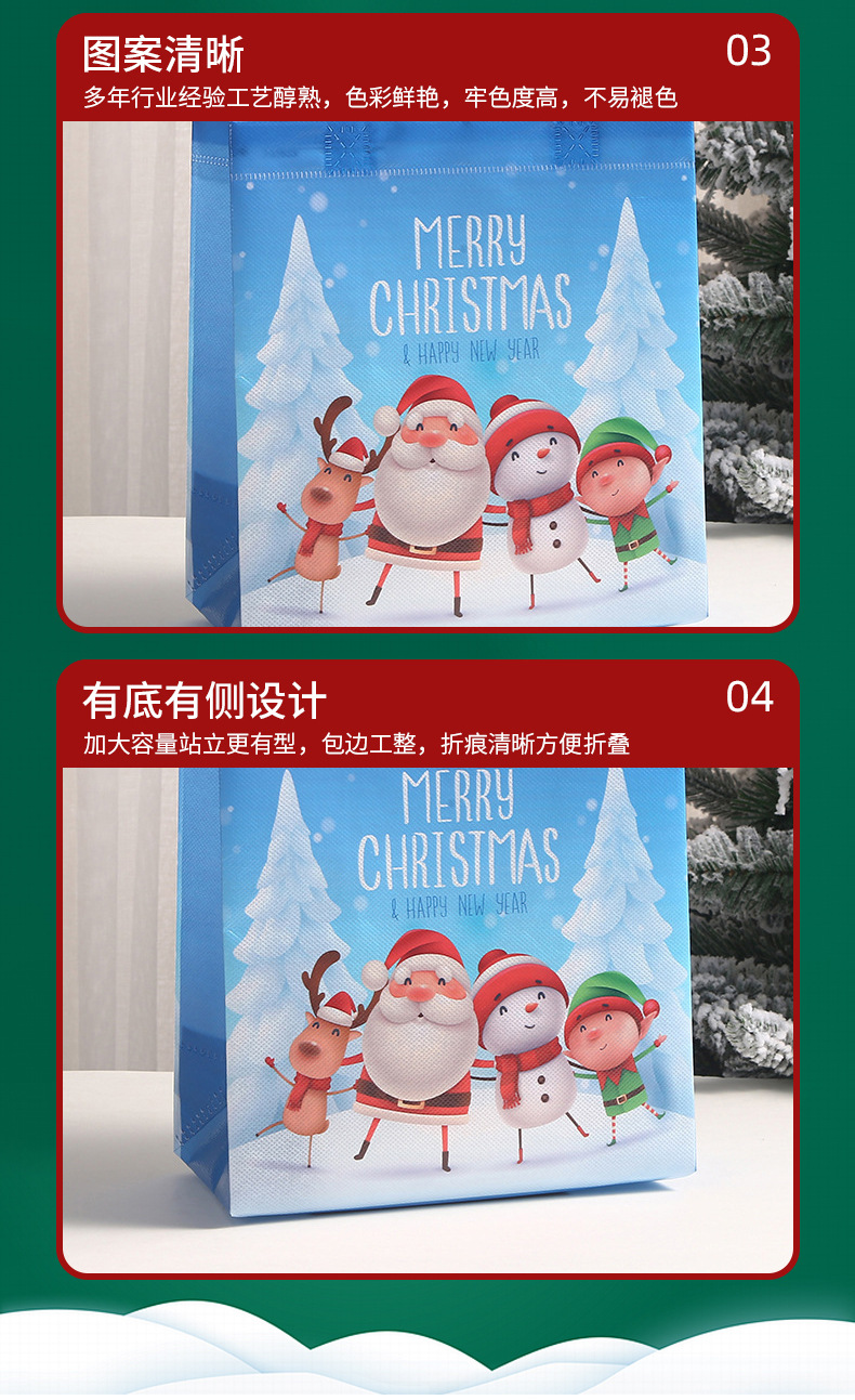 新款圣诞主题礼品袋外卖打包带印花伴手礼包装袋批发无纺布袋子