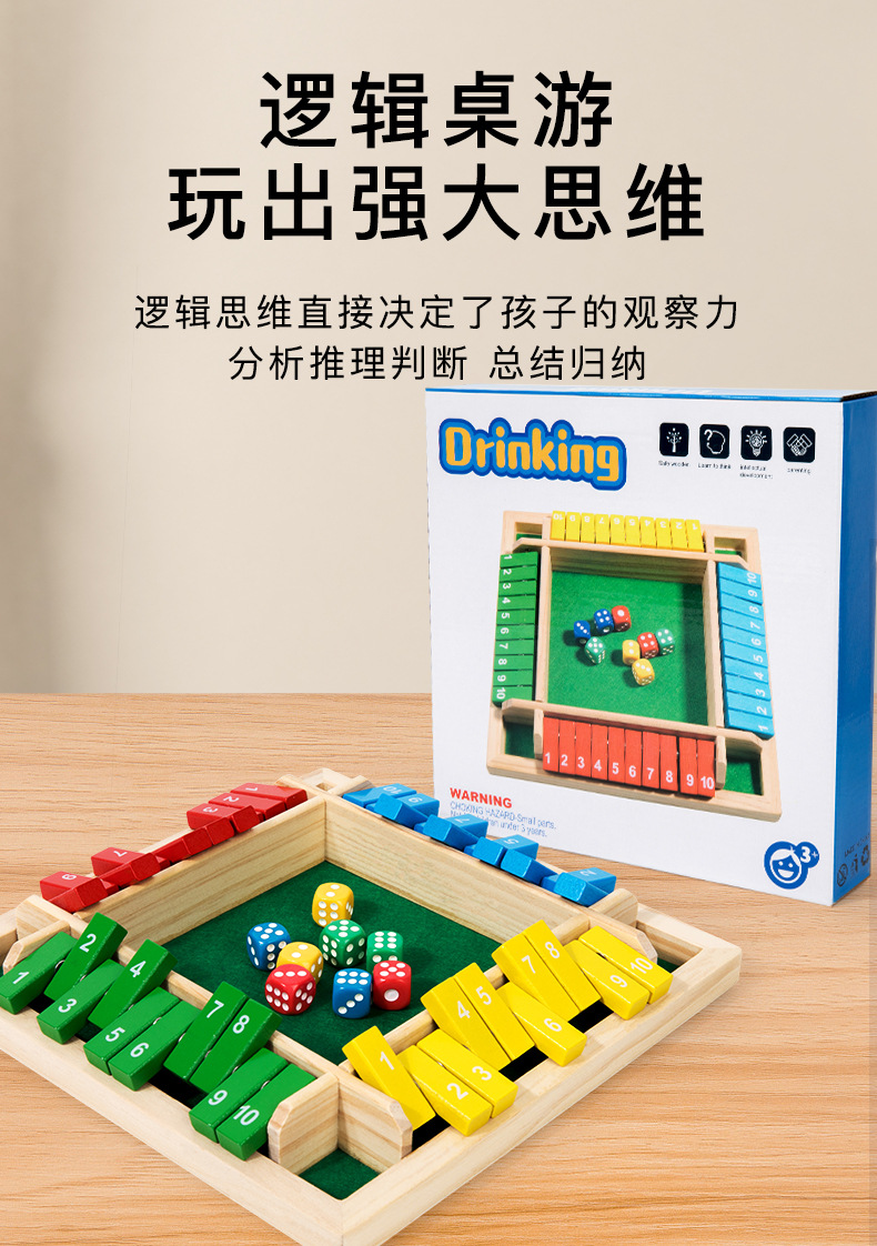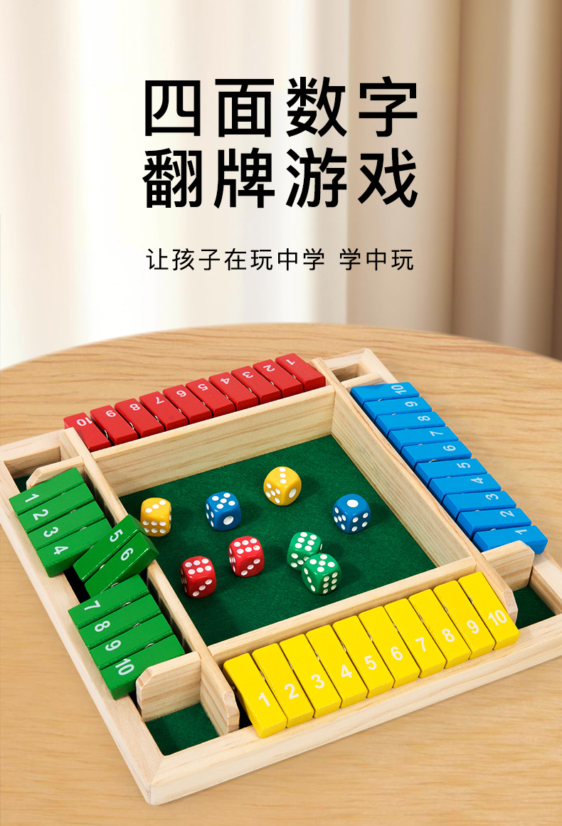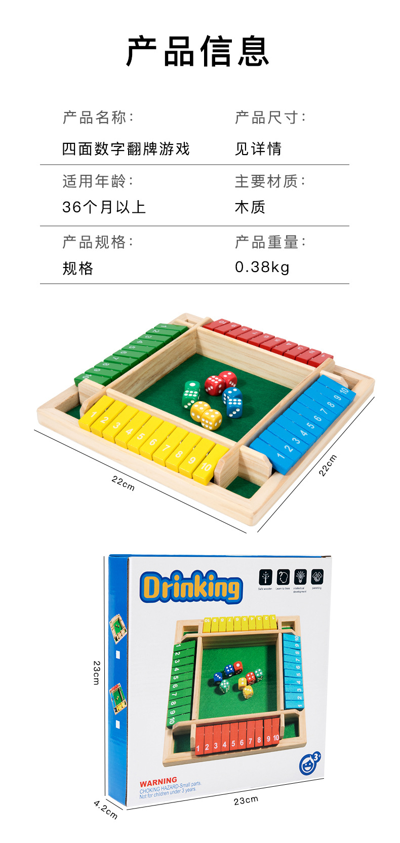 跨境数字翻牌儿童玩具四面桌游喝酒游戏道具益智聚会休闲助兴赌酒