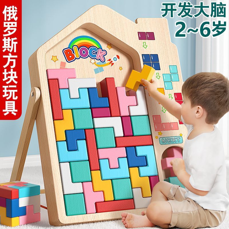 クロスボーダー児童知育テーブルゲーム教具積み木四面デジタルカードをめくってインタラクティブにお酒を飲んでゲームをしておもちゃを並べて卸売りします。