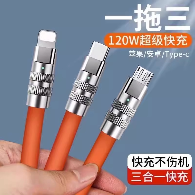 一モップ三6a超急速充電は安卓TYPE-Cリンゴ編み三合一携帯電話ケーブルに適している