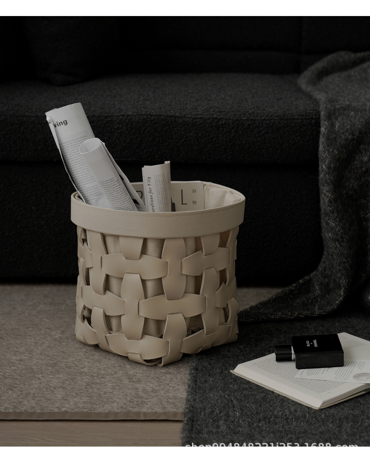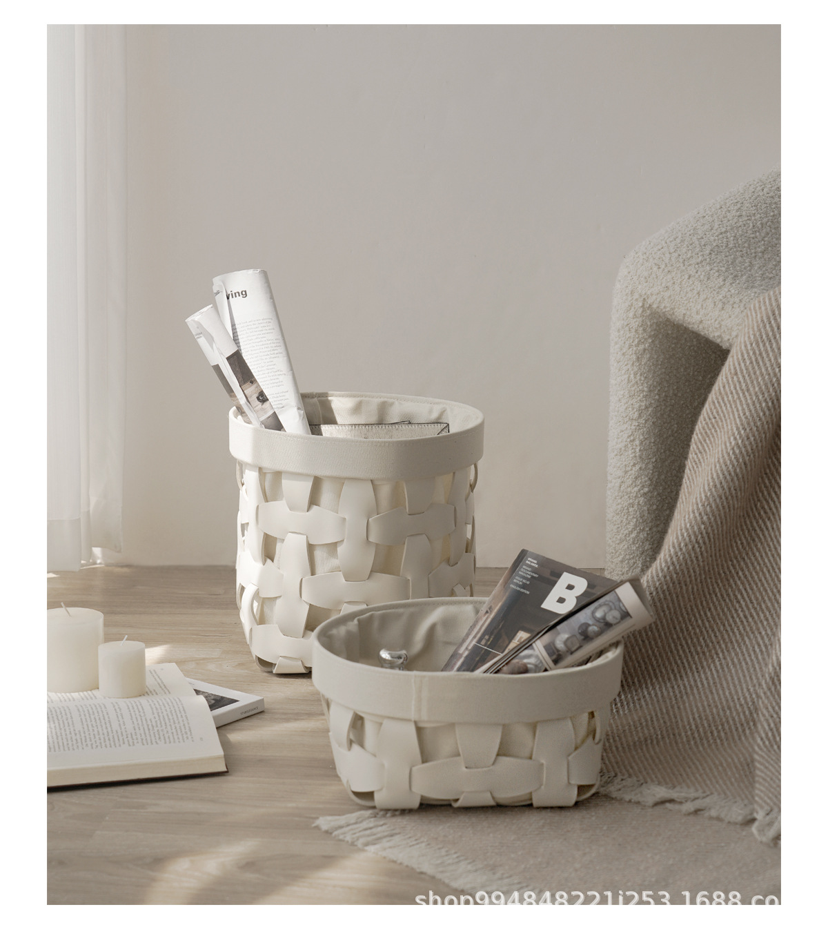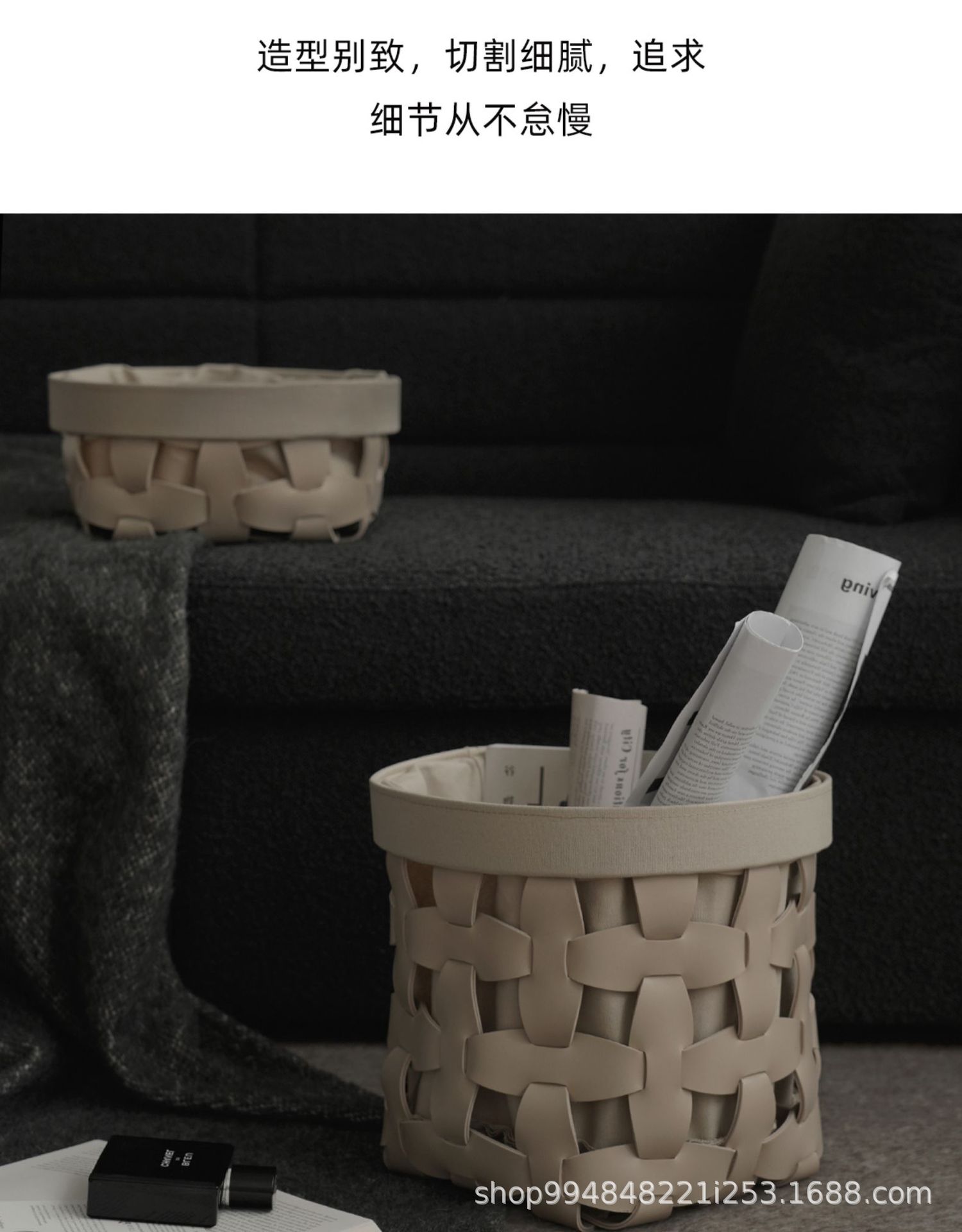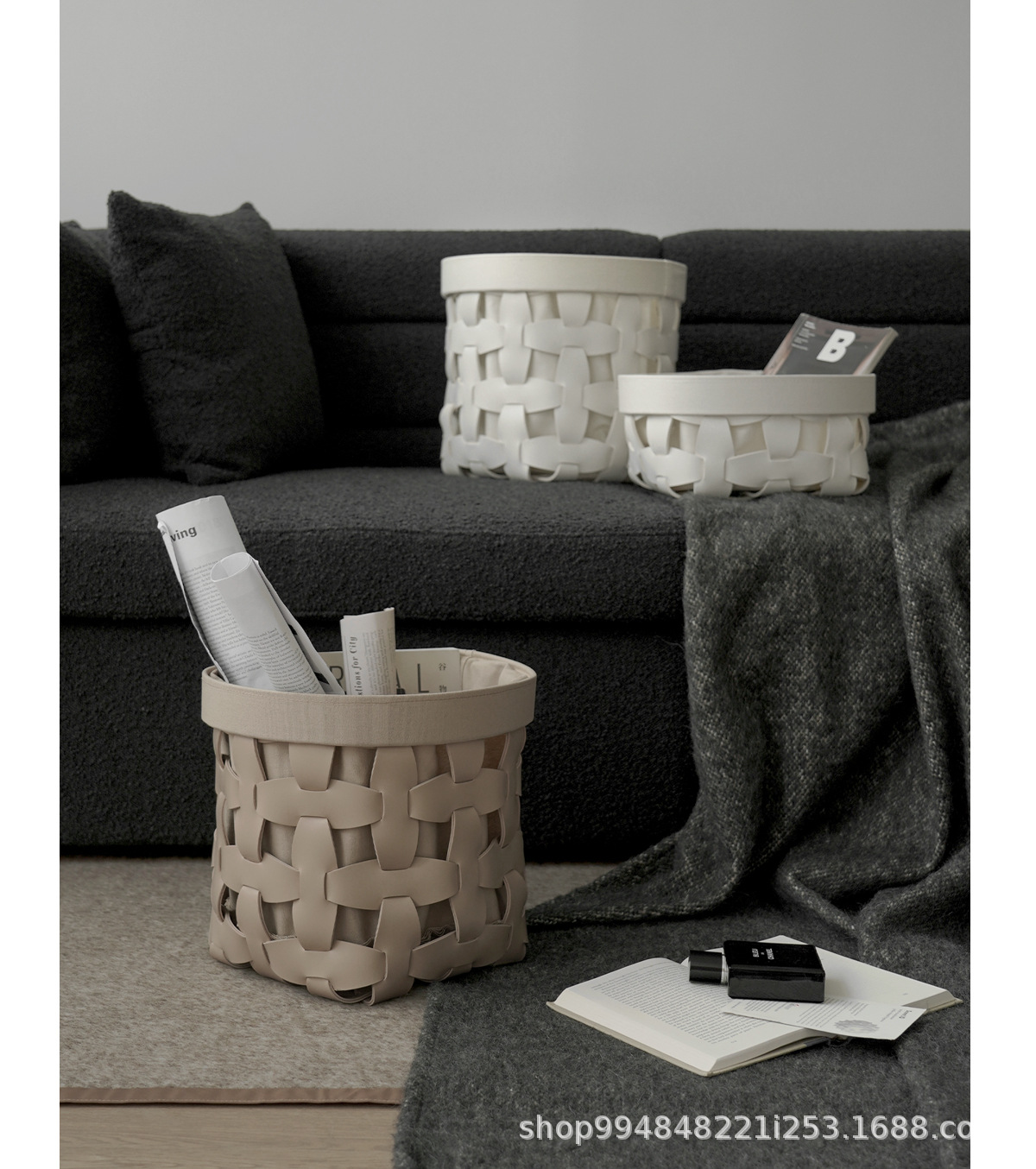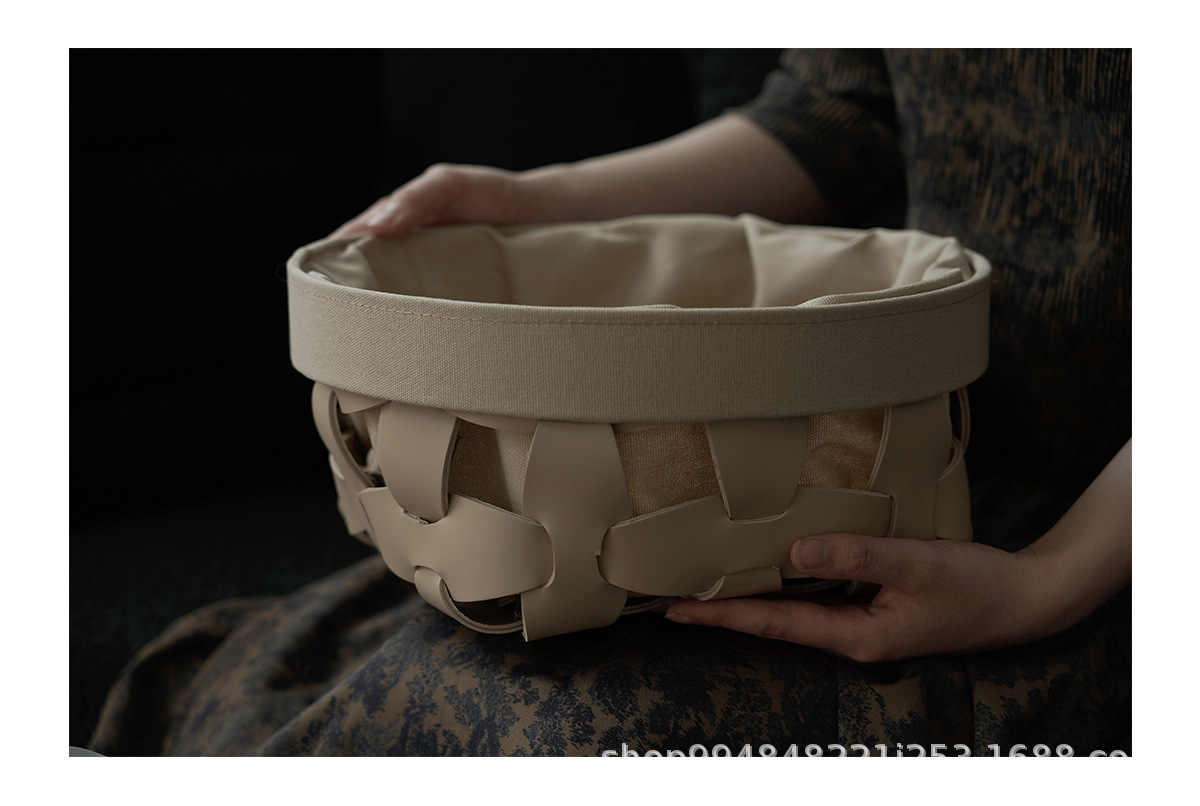 モデルルーム手織りレザー収納バスケットホームクロークリビングルームシンプルなソフト装飾装飾品