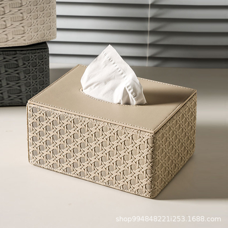 高級創意皮革ティッシュ箱客間軽豪華高顔値皮革レトロデスクトップ置物高級感引き出し箱
