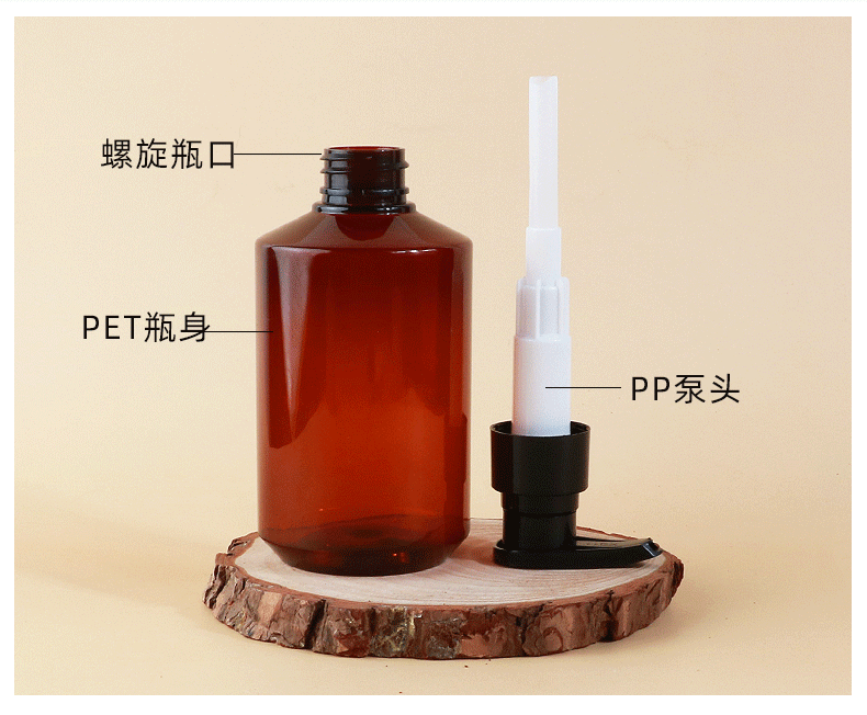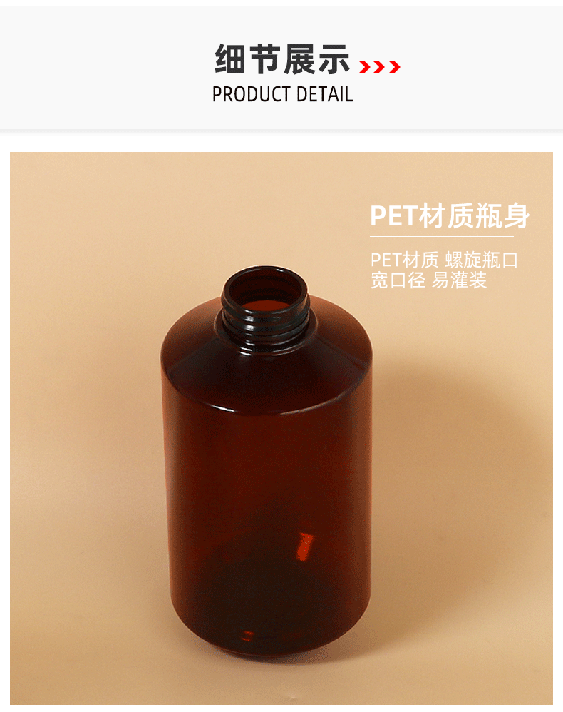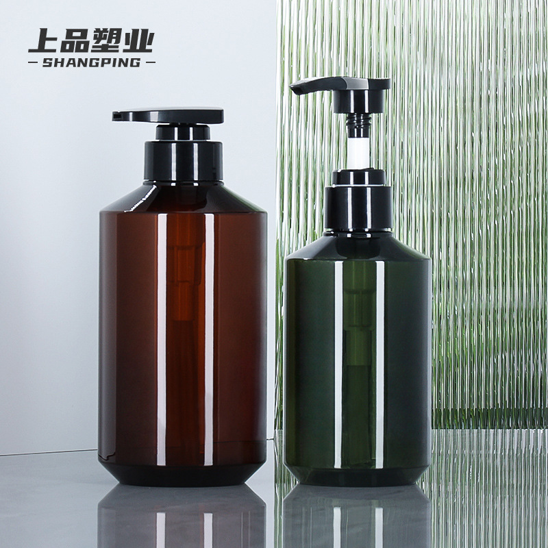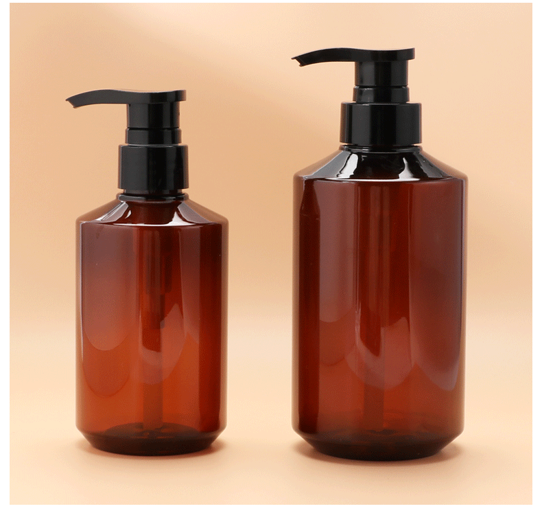 厂家直供500ml沐浴露分装瓶茶色pet圆肩洗护瓶子酒店洗发水按压瓶