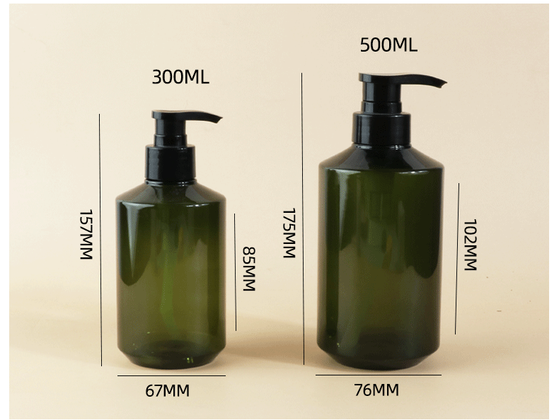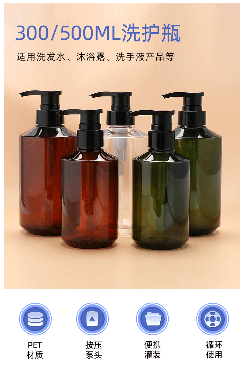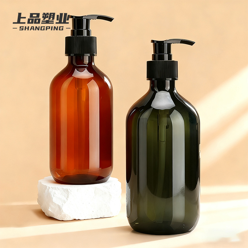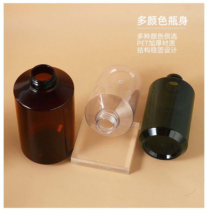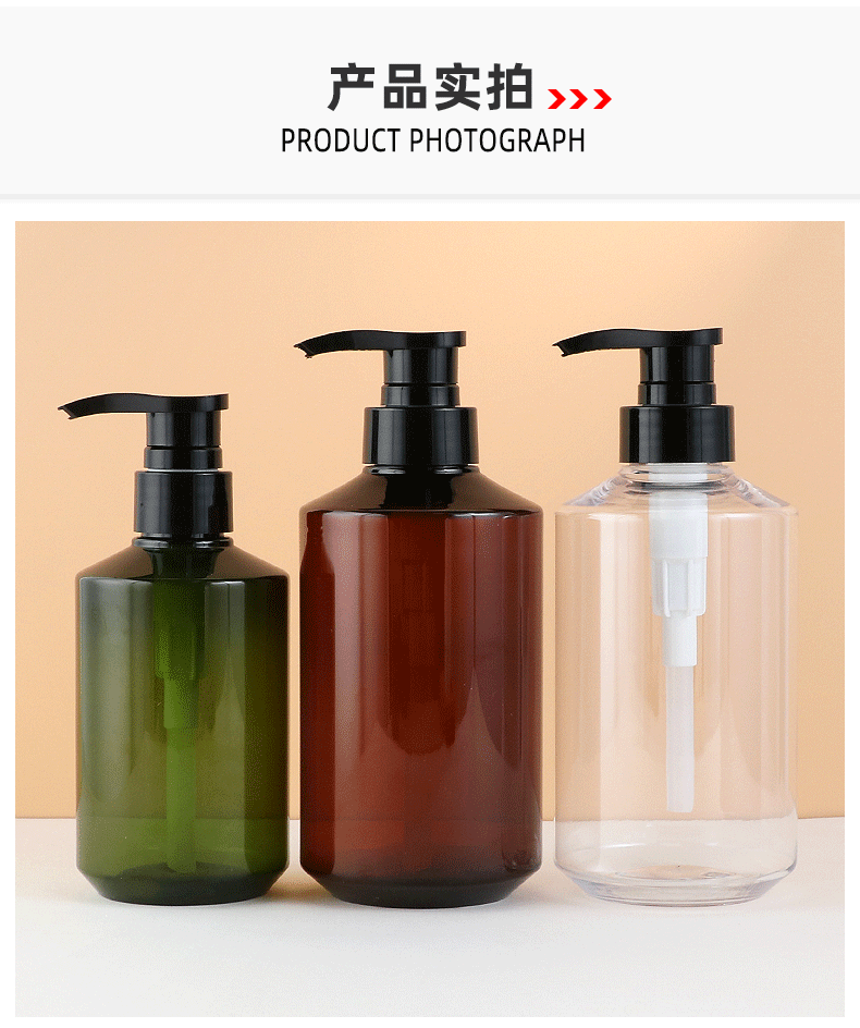 现货300ml500ml茶色绿色斜肩洗发水瓶空瓶 按压乳液pet塑料分装瓶