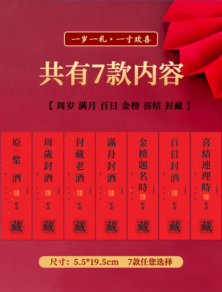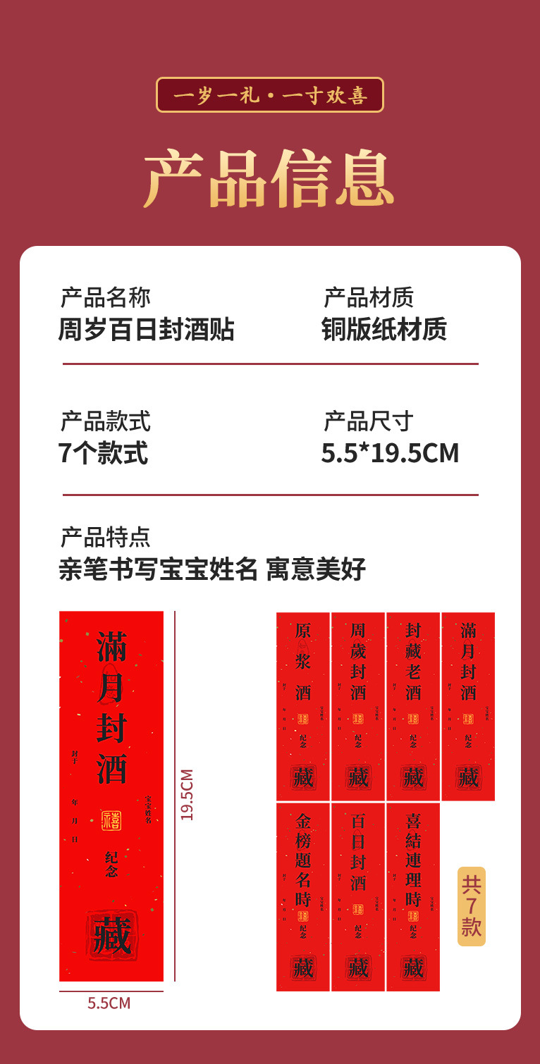 カラー 平装満1歳百日封酒貼り-百日封酒-枚葉,平装満1歳百日封酒貼り-封蔵老酒-枚葉,平装満1歳百日封酒貼り-金榜題名時-枚葉,平装満1歳百日封酒貼り-満月封酒-枚葉,平装満1歳百日封酒貼り-喜結連理時-枚葉,平装満1歳百日封酒貼り-原糊酒-枚葉,平装満1歳百日封酒貼り-満1歳封酒-枚葉