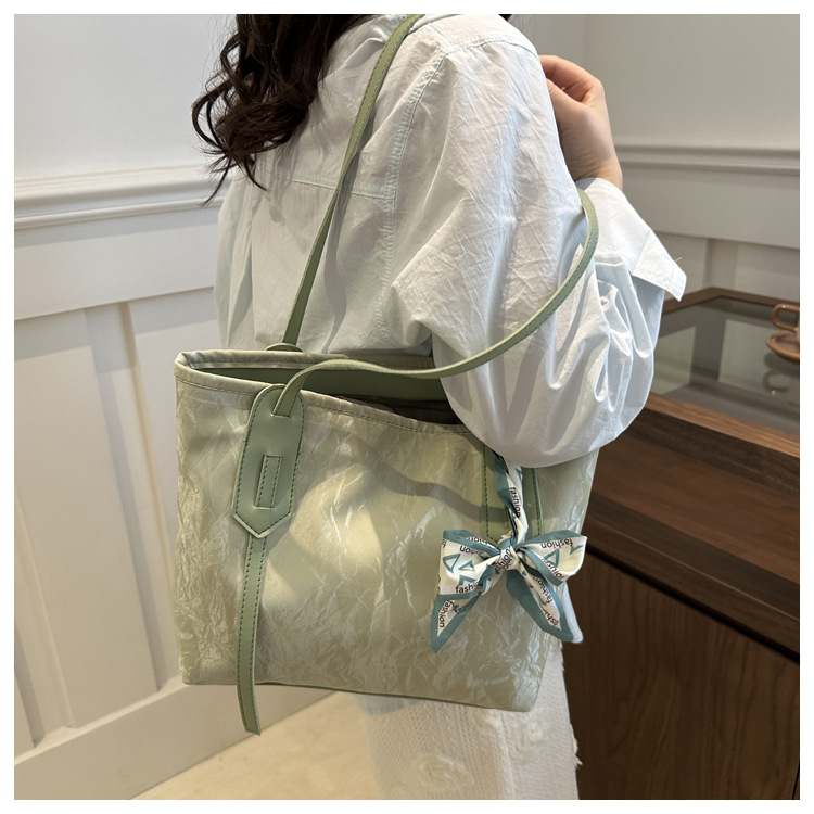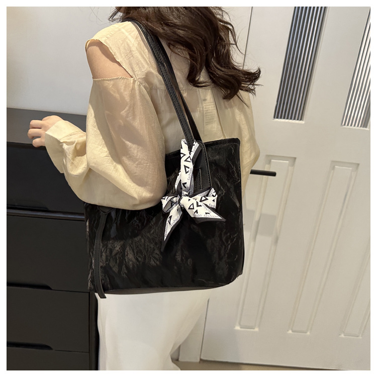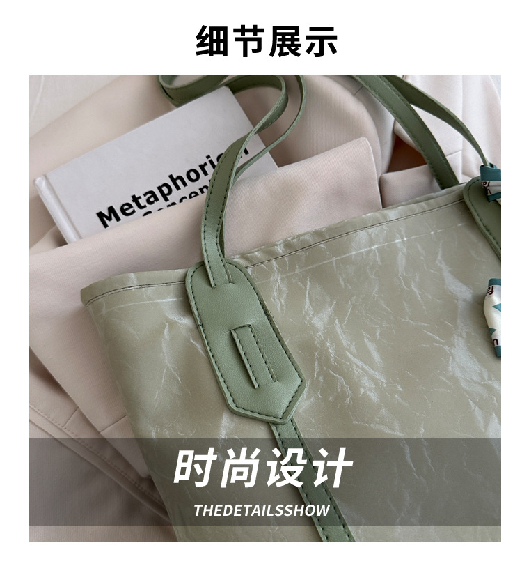 カジュアルソフト面大容量バッグ女性2024新型ファッションは、シングルバッグ通勤の個性的なバッグをつなぎ合わせている