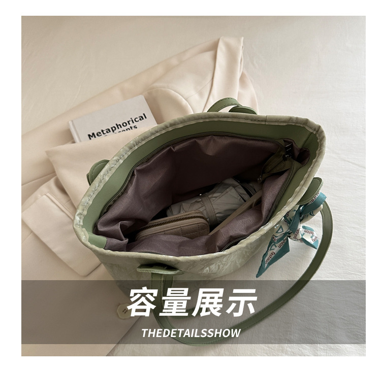 夏の小清新文芸キャンバスバッグ女2024新型韓国版しわ特包引き紐大容量ショルダーバッグ