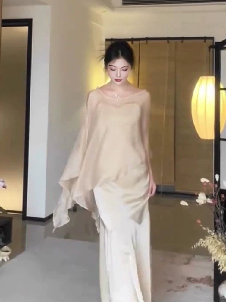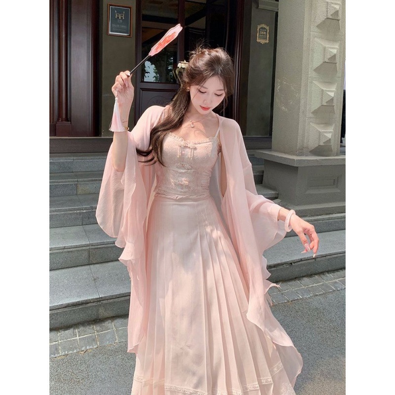 女性用妖精シフォン日焼け止め服、サスペンダースカート、小さなショール、カーディガンジャケット、チュール付きの新しい夏のスタイル