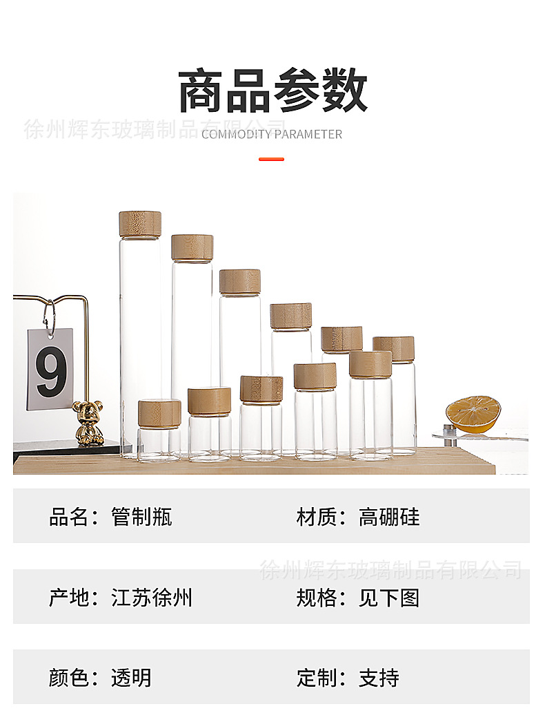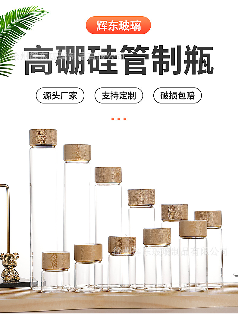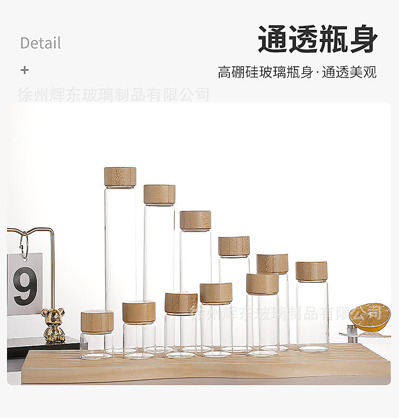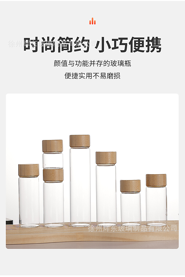 厂家37mm直口竹盖管制瓶漂流许愿瓶圆底透明玻璃瓶虫草药粉药片瓶