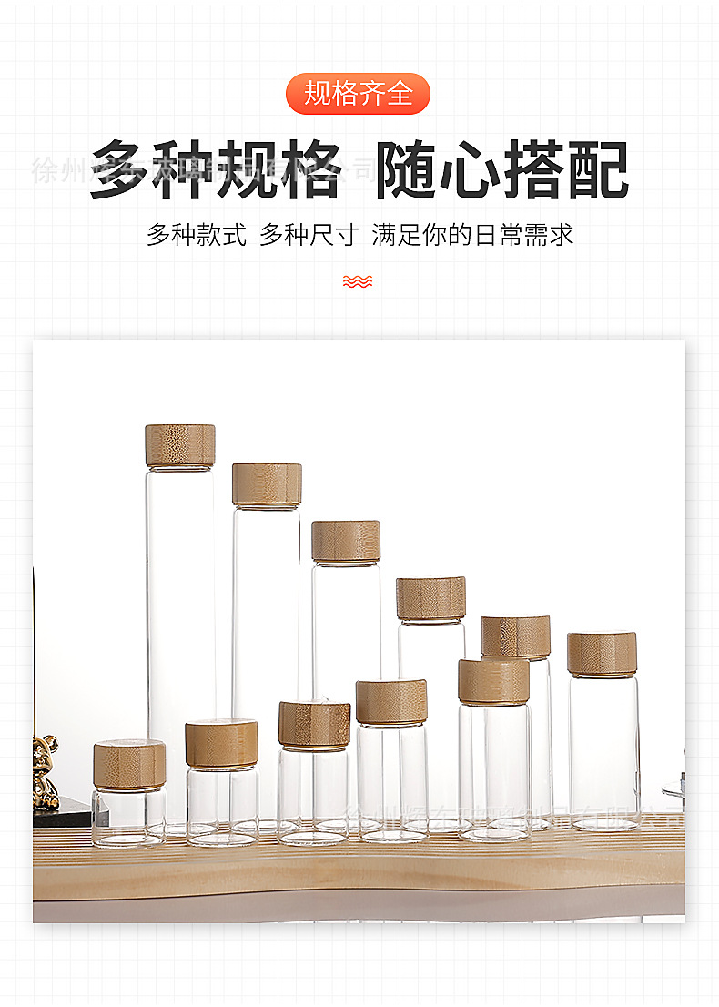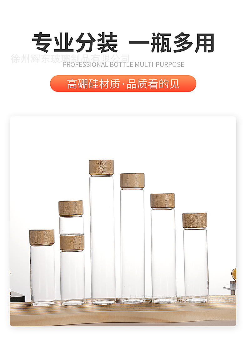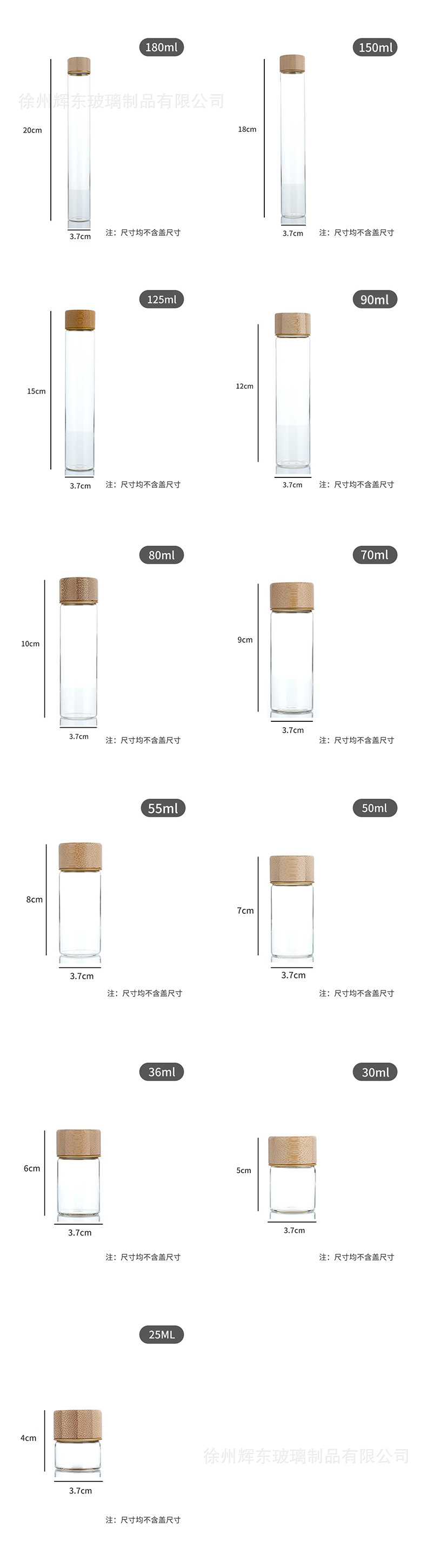 厂家37mm直口竹盖管制瓶漂流许愿瓶圆底透明玻璃瓶虫草药粉药片瓶